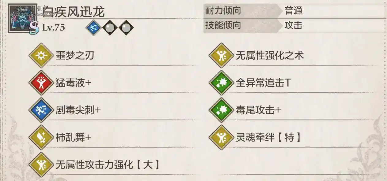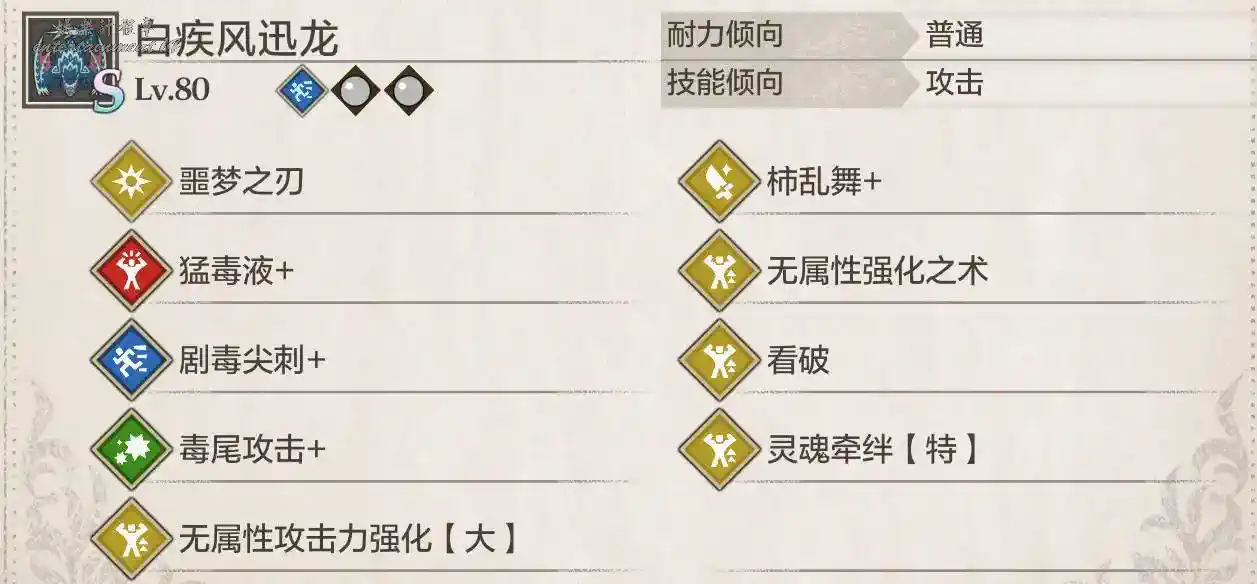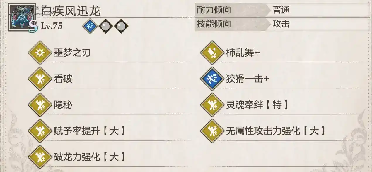 狗子/白疾風基因圖(看破是擂斯的,柿亂舞是天狗獸的,靈魂牽絆特是溟波出的沒有可以換成大或中)