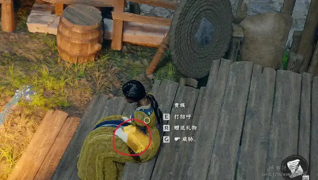 但除此之外,在大宅附近的貴族身上也是有可能刷出來金塊的。只需對他們“注視”,即可看到npc身上攜帶的是什麼物品。下面這樣的就是帶著金塊的npc: (具體表現為三塊疊在一起的金條)