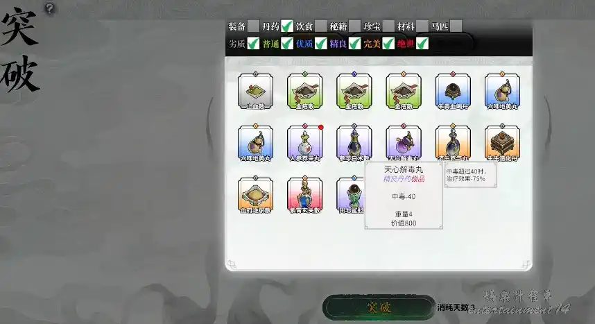 作用:讓主武器招式質變,如《青城追魂奪命劍》突破後20%連擊,實現無限連。