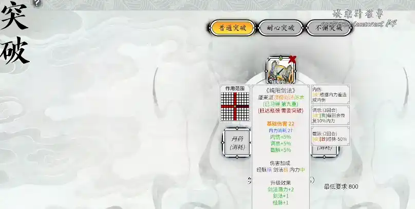 招式突破(外功/武器招式):僅使用該招式時生效,強化招式傷害、命中、特效,是輸出與控場的核心。