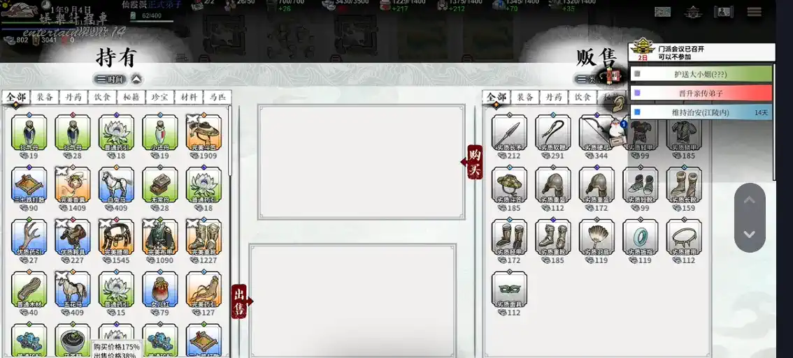 刷其他門派好感≥30(40更便宜),收特產、換秘籍/材料再轉賣。