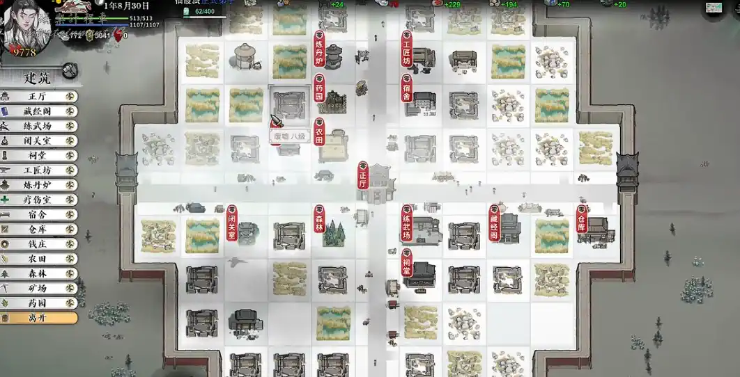 當長老/掌門,建錢莊/集市/礦場/藥園,持續產銀+材料。