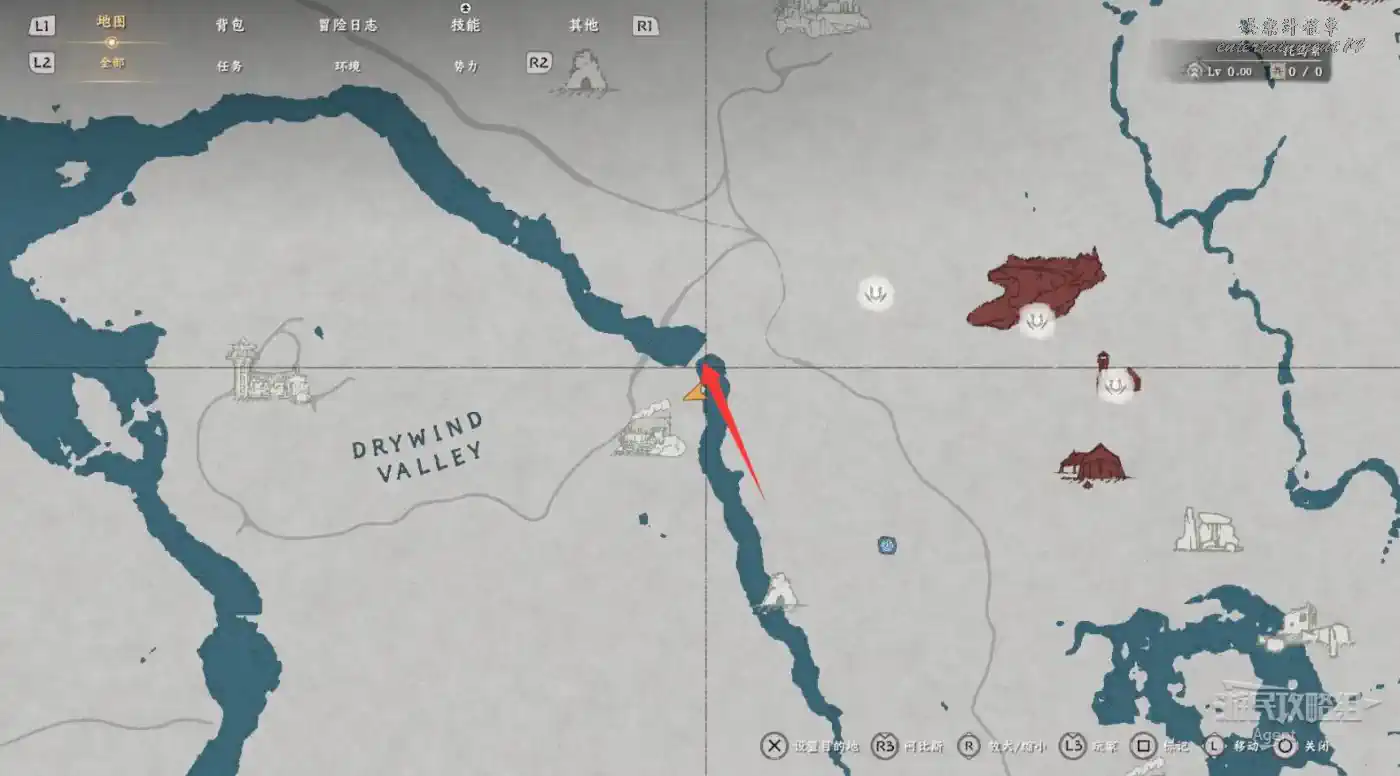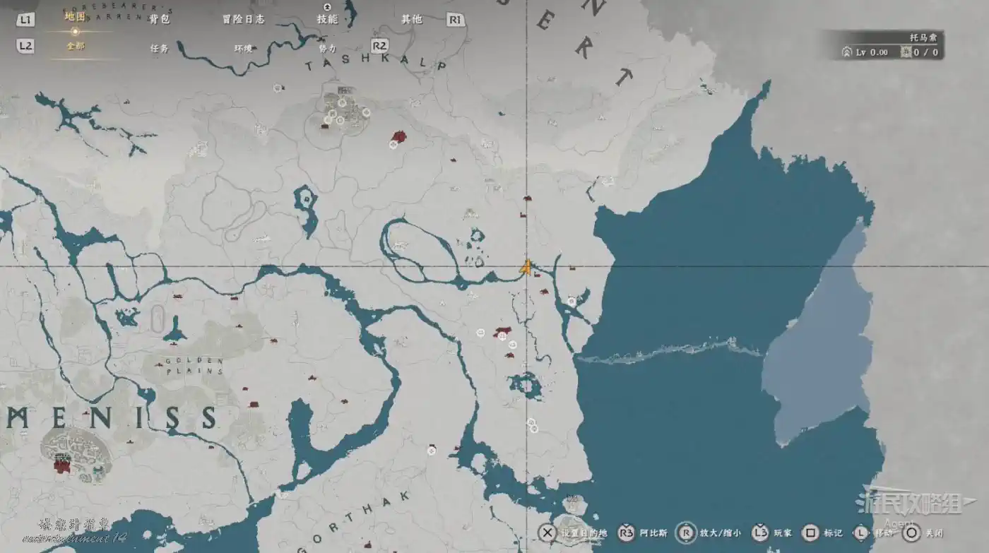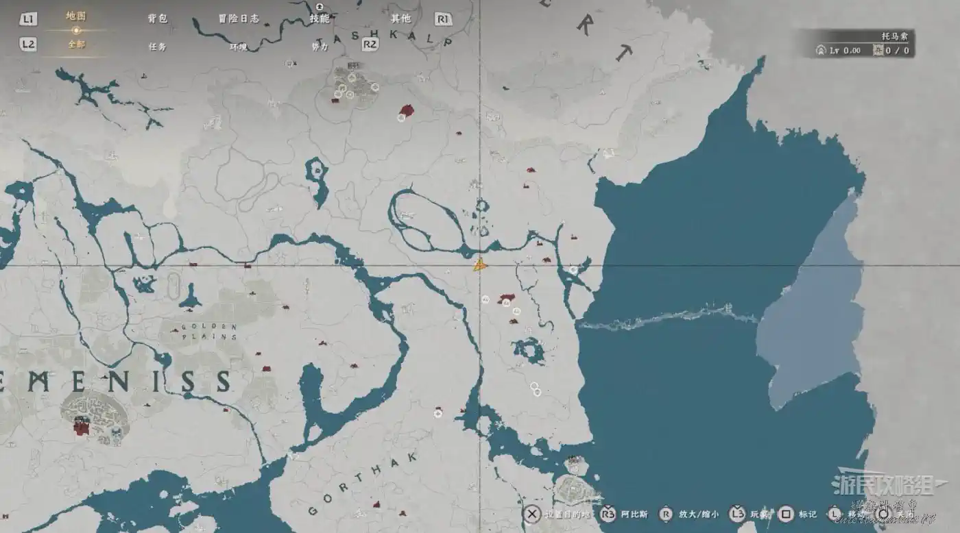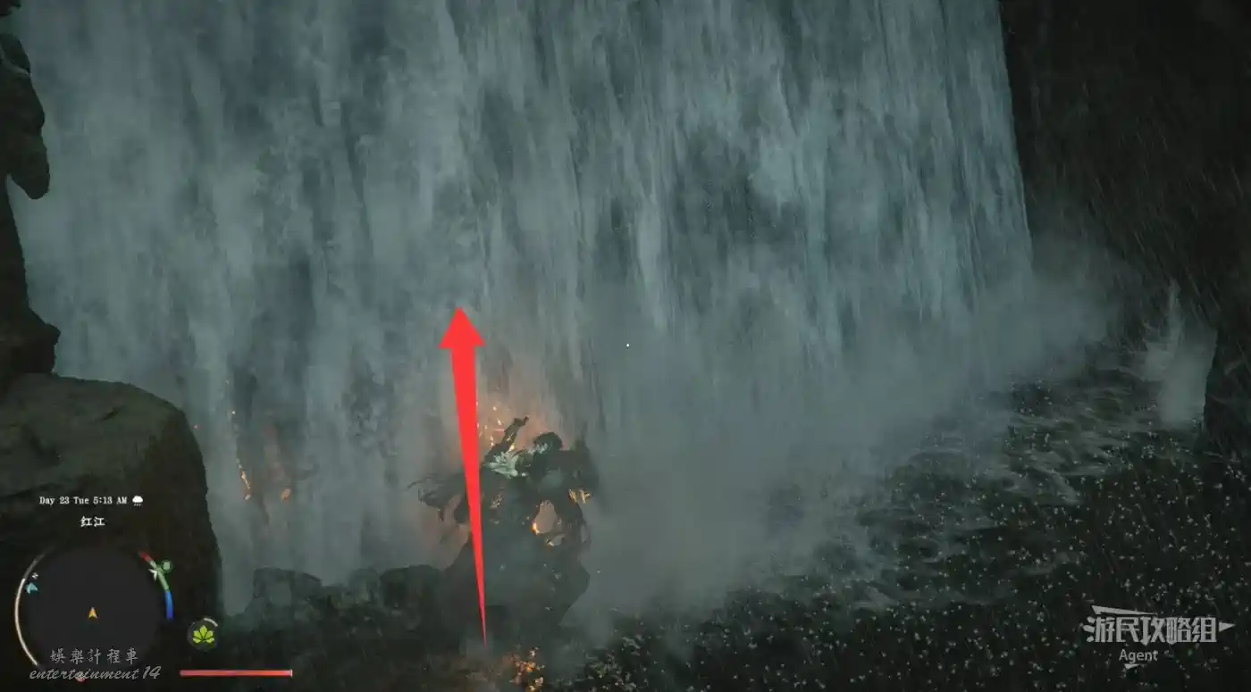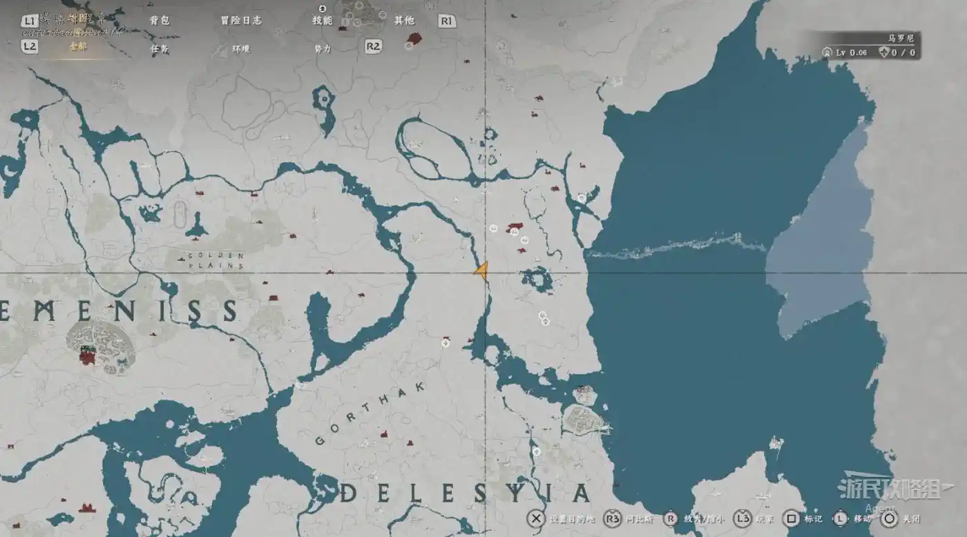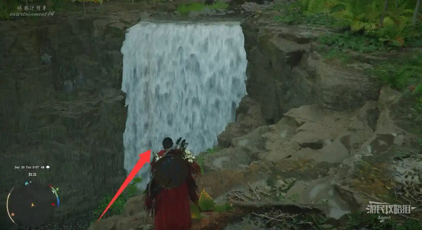 在大地圖最東面(德梅尼斯區域東面,黃金甲套裝各個部件都在這塊附近),下圖位置有個瀑布。