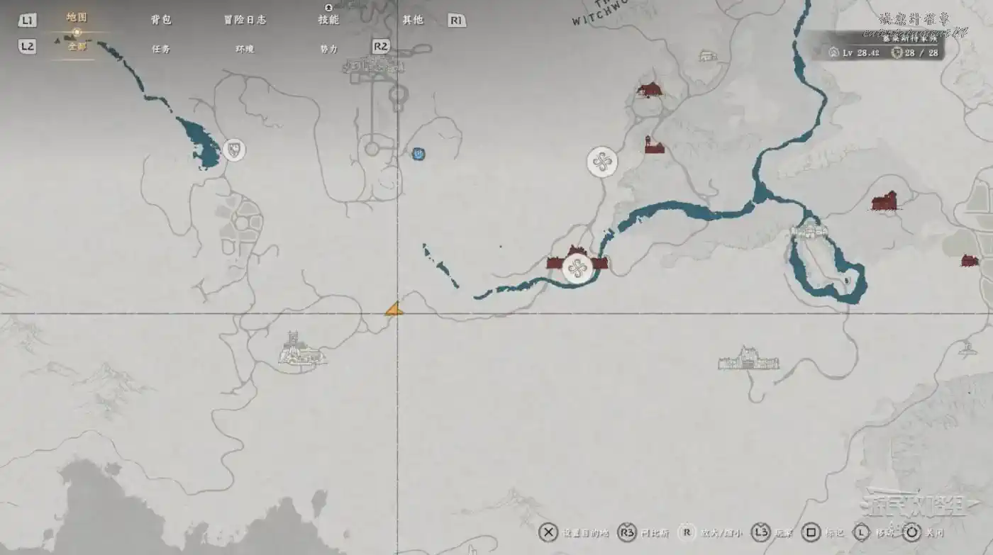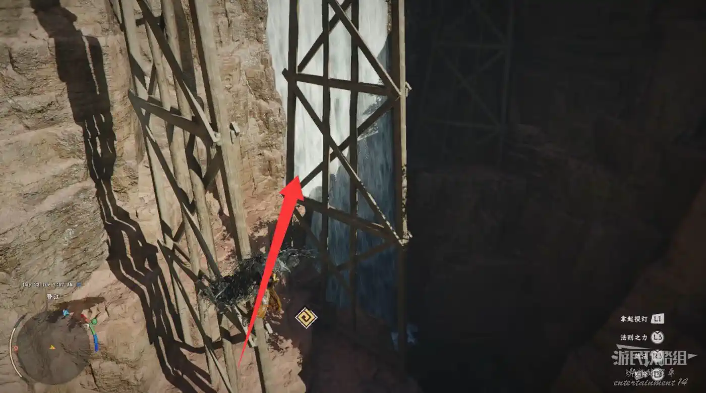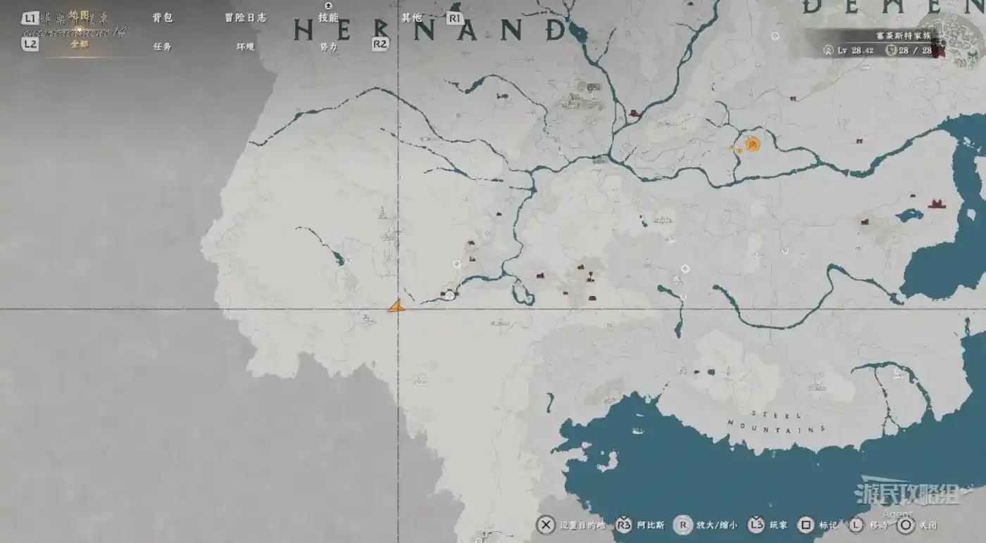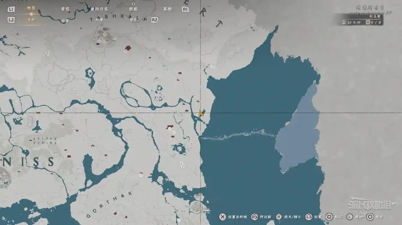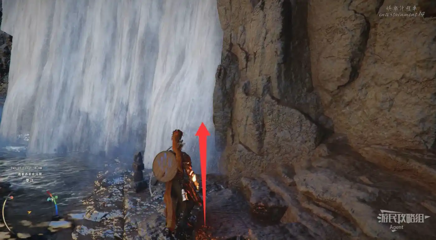 在大地圖最東面(德梅尼斯區域東面,黃金甲套裝各個部件都在這塊附近),下圖位置有個瀑布。