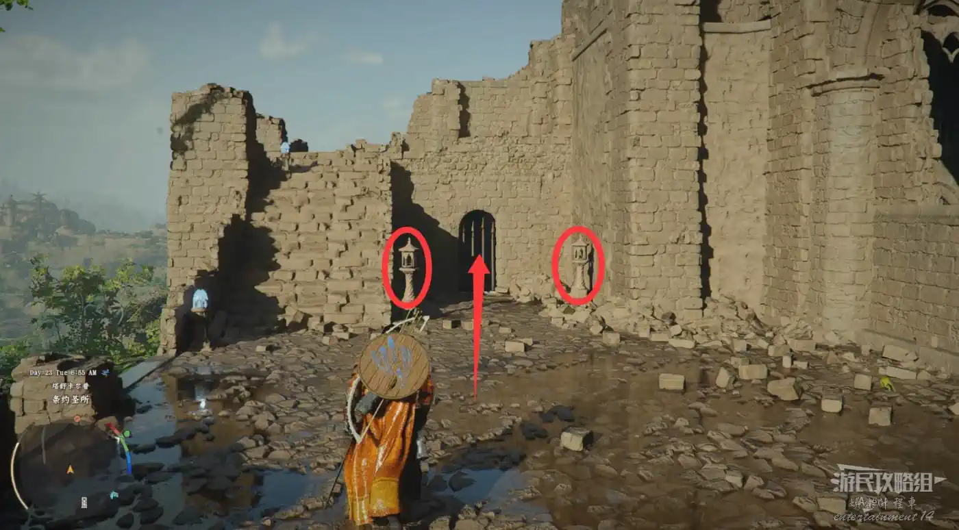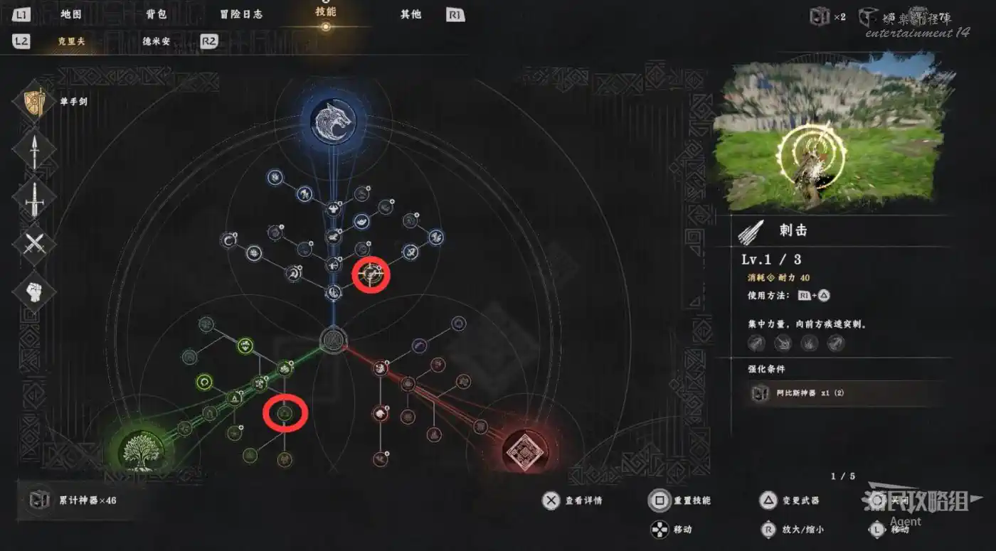“勁法:凝神”這個技能麻煩點,需要主線推到第四章後,到埃爾南德南面下圖位置,看彩色石頭前的幻影演示學習。使用這個技能就可以擊碎彩色石頭。