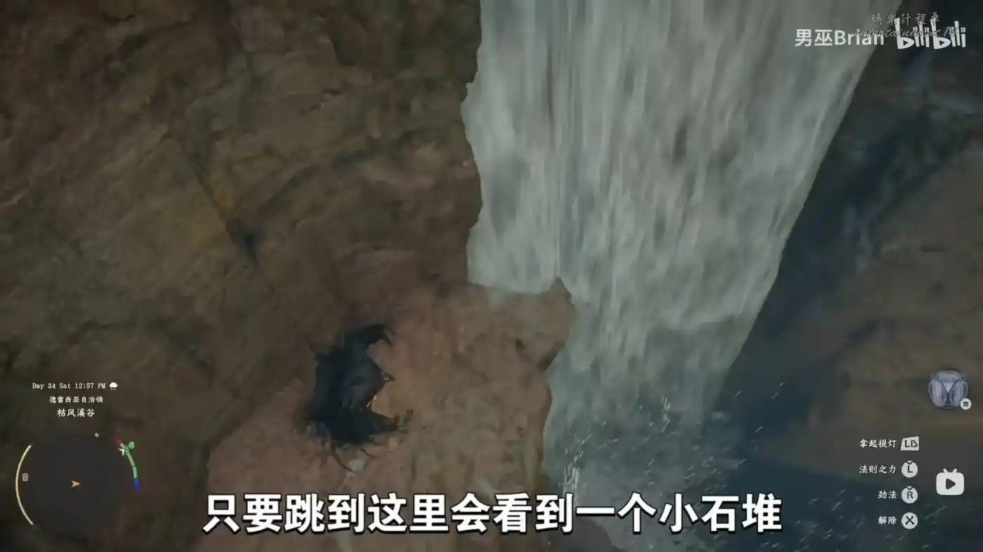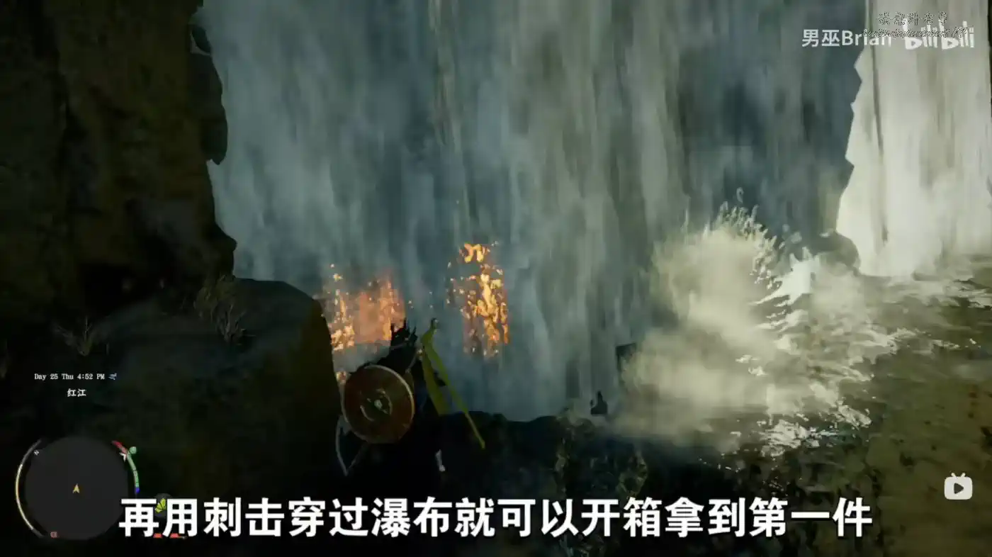 然後使用刺擊進入瀑布。