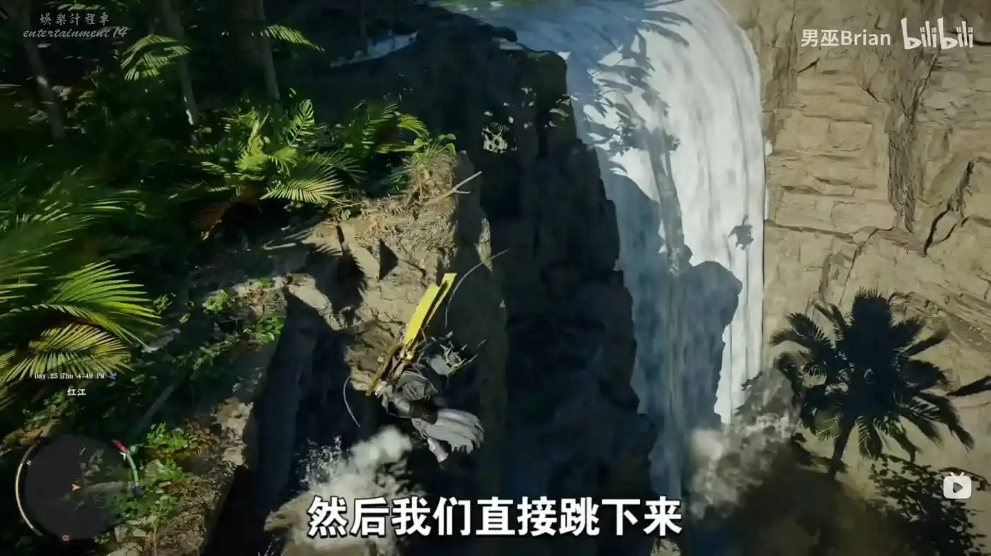 這裡有個瀑布,跳到瀑布下面。