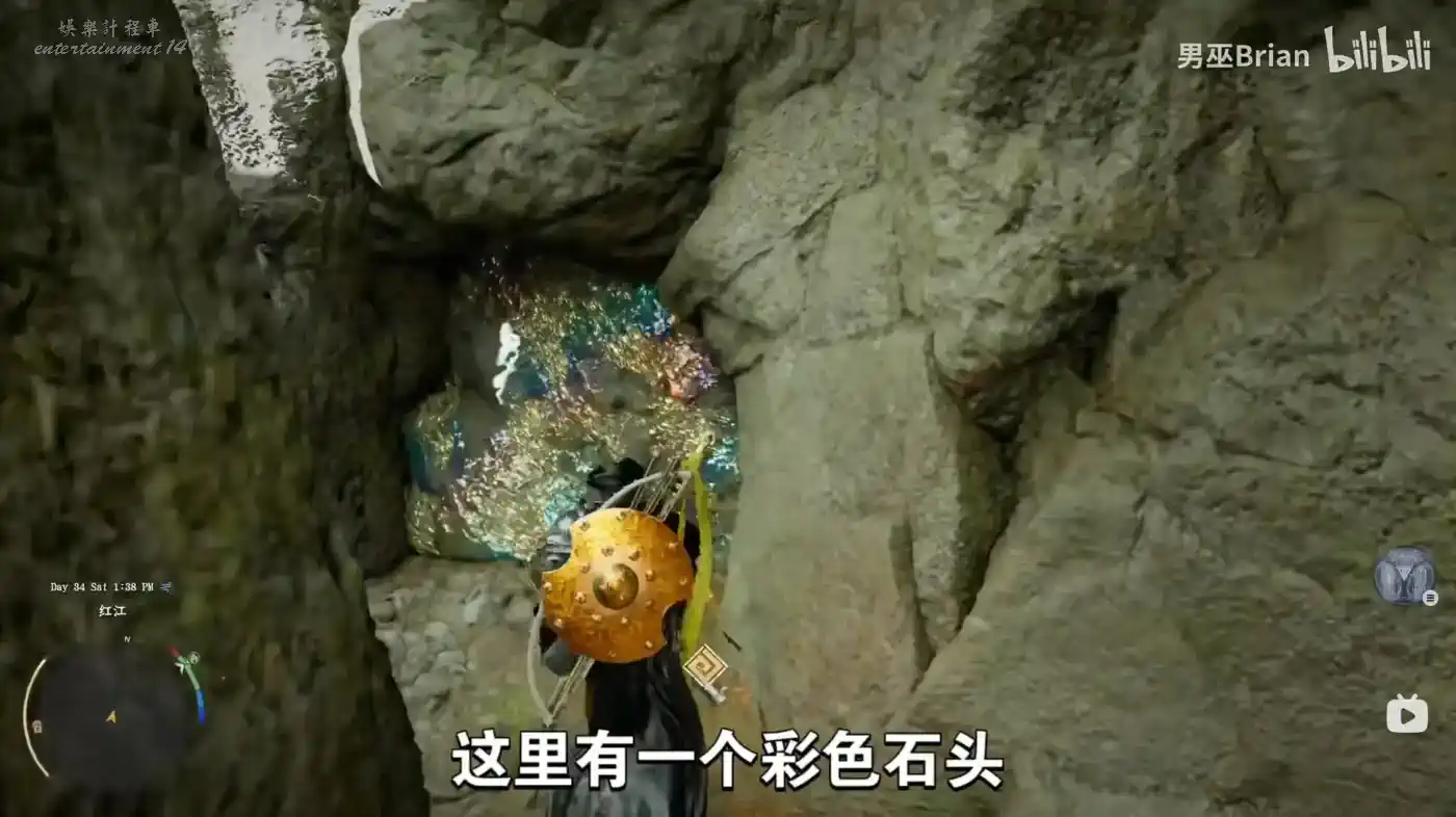 穿進來可以看到一大塊彩色石頭。