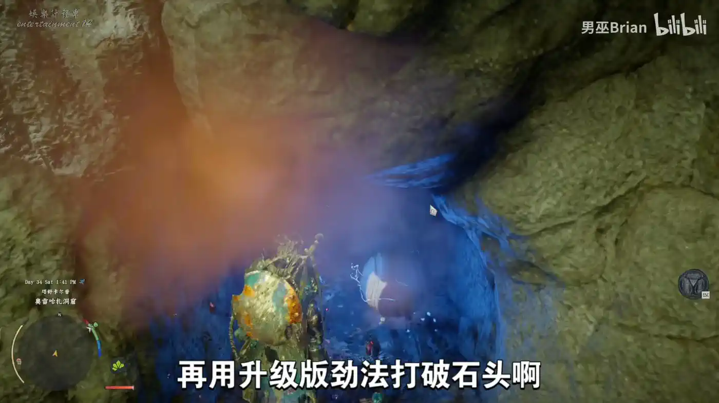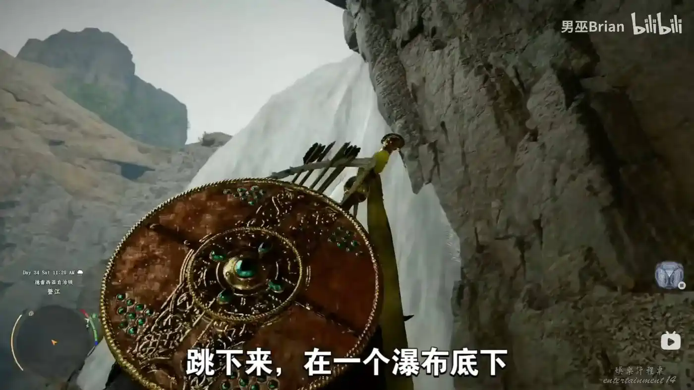 然後到瀑布下面使用刺擊進入。