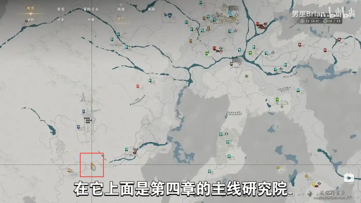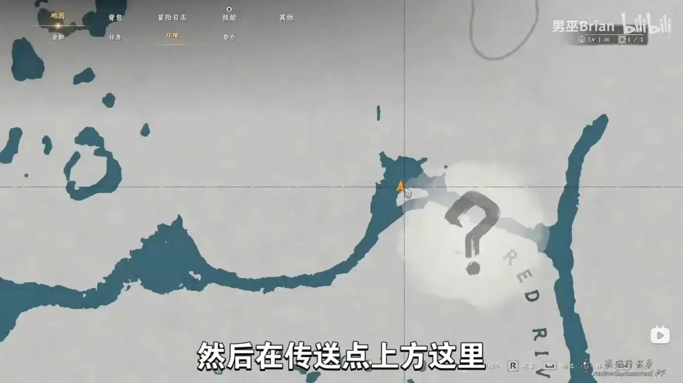 還是盾牌的那個區域,河流稍微考上一點的位置。