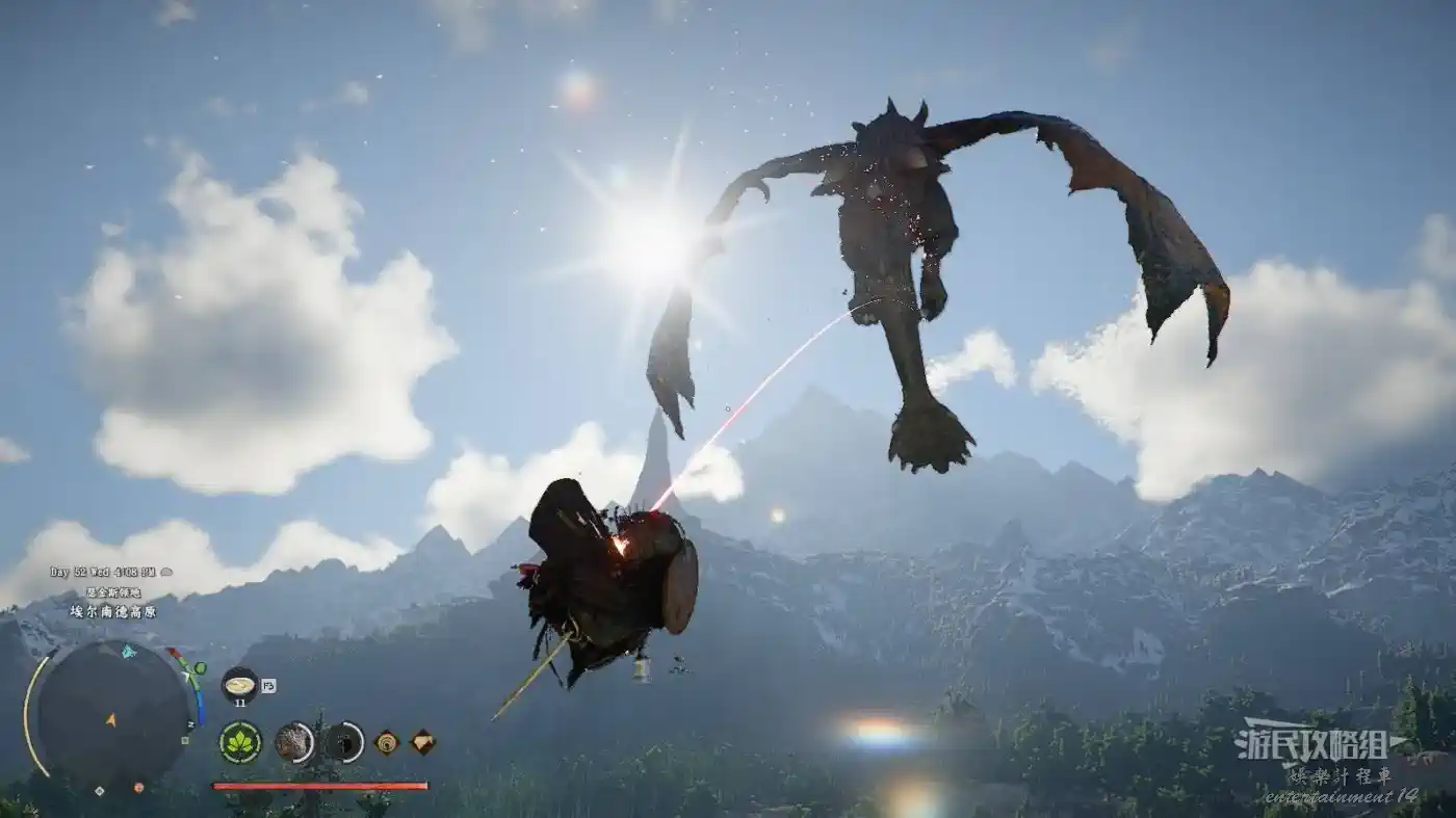 騎龍時可以消耗耐力發射火球和火焰吐息,並且可以向下俯衝加速(右下角會有提示按鍵),但即使在空中耐力也會恢復。