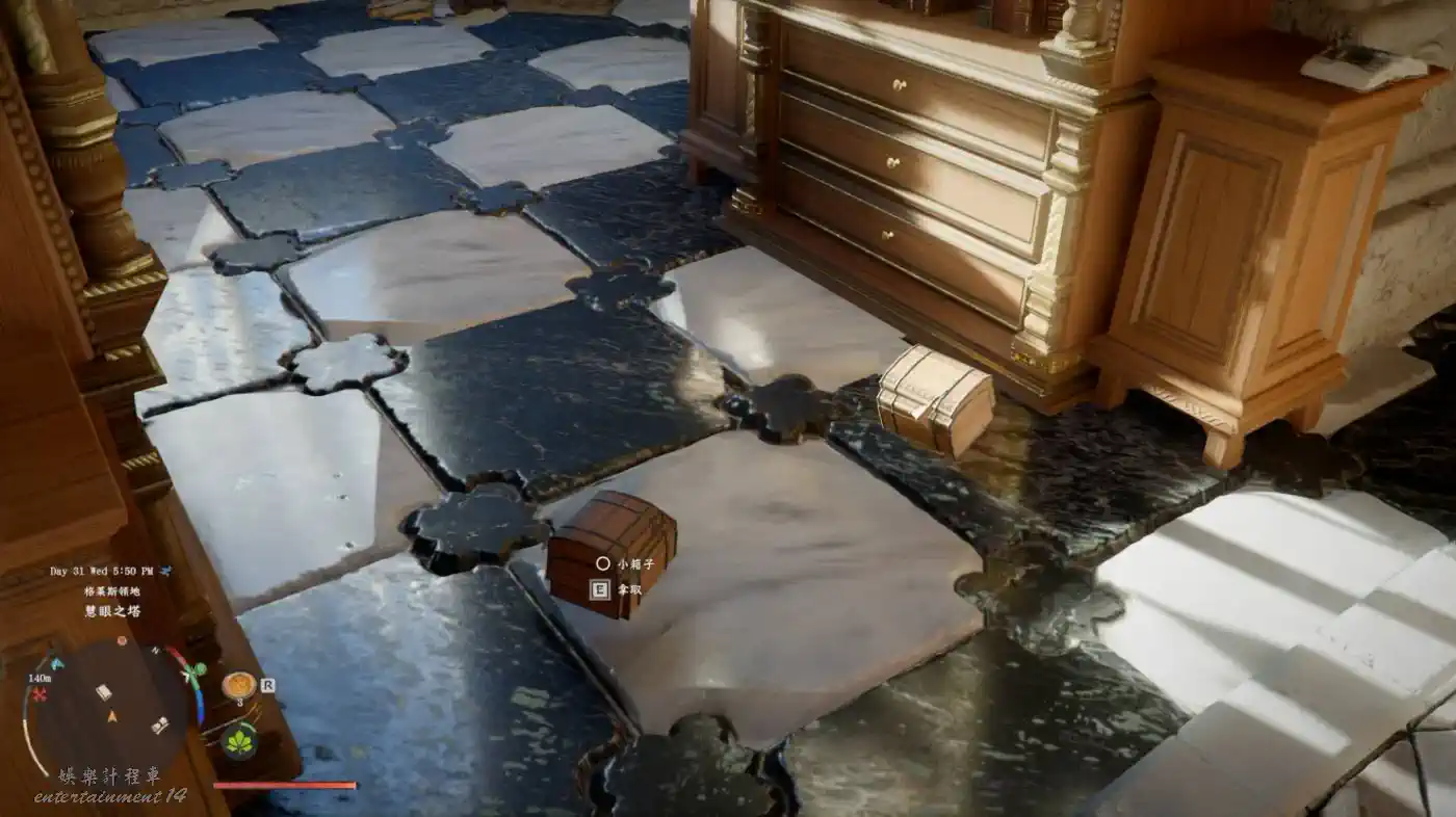 赤血沙漠 (Crimson Desert) 無限刷小箱子拿錢袋教學 26 3 月 2026-03-26 廣告 作者:破爆房書竹 來源:紅色沙漠吧 剛刷的99個沉甸甸的錢袋: 地點就在南邊的慧眼之塔,塔里所有抽屜拿取小箱子後再合上,跑兩步刷一下就會在外側憑空刷新出新的小箱子可以無限拿取,除了錢袋外還會爆一些鑰匙貿易商品之類的,效率不如金條哥布林饋贈高,就是穩定。