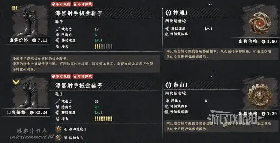 位於德梅尼斯【被遺忘的崗哨】,在地圖上GORTHAK北邊的河上方。從崗哨正面的樓梯進入崗哨地下,在房間盡頭的牆上可以看到一塊不一樣的石板,對石板用勁法(滑鼠中鍵/R3)進入石板後方的隱藏房間,開啟寶箱即可獲得漆黑射手板金鞋子。之後再用勁法打來時的牆就能出去。