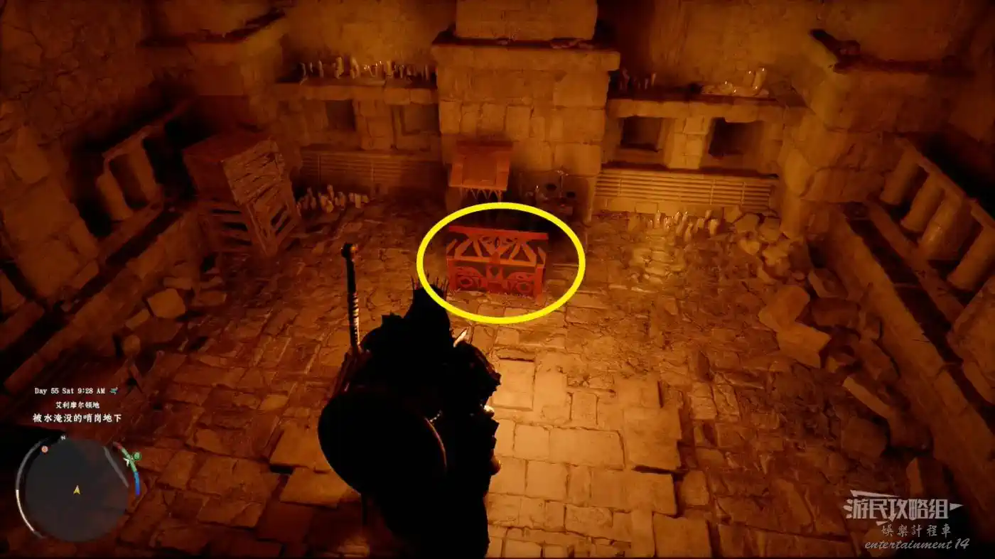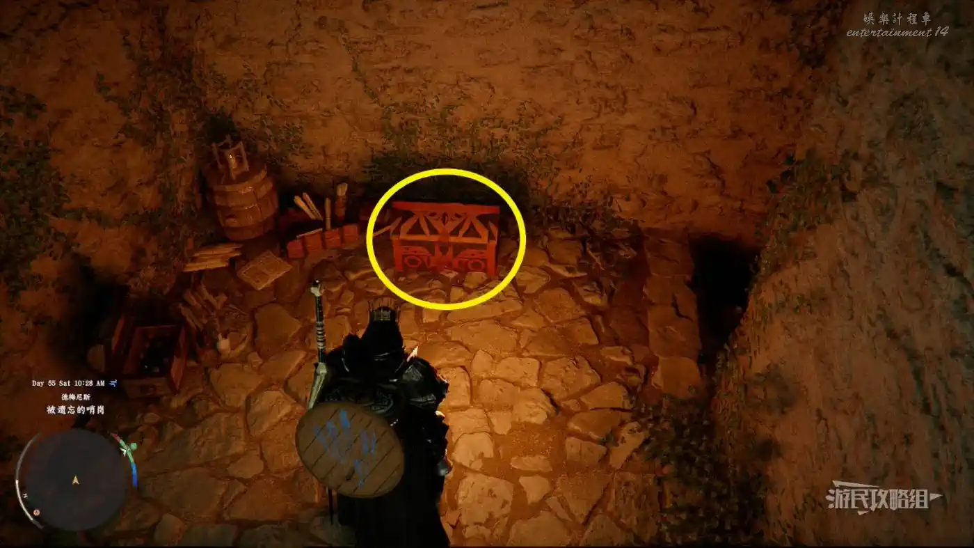 位於德梅尼斯的【火槍要塞】,在地圖上GOLDEN PLAINS的東北方向河邊。跟隨劇情進度,可能在來的路上會遇到許多敵人,但只要距離要塞足夠近,就不會再被攻擊了。來到要塞正門,不要走正門,走正門旁邊腳手架上的小窗戶進入要塞,沿路走到盡頭看到一個翻轉木板門,按【鍵盤C鍵/L3】下蹲穿過木板門,即可看到寶箱,開啟寶箱即可獲得漆黑射手板金盔甲。注意拿完離開時需要下蹲翻滾或突刺才能離開木板門,或者直接傳送走也行。