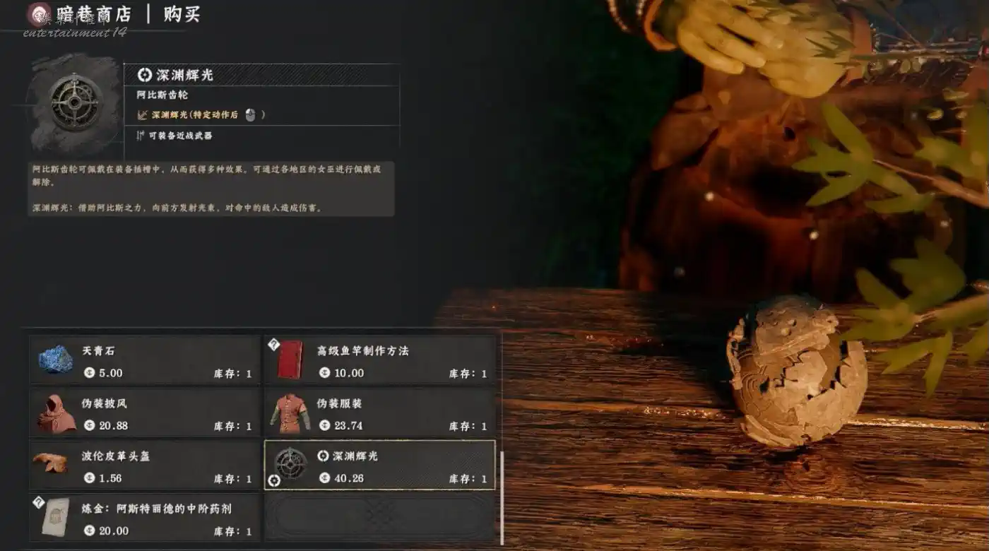 購買資訊、價格:40銀幣、商品名稱:深淵輝光、庫存:1件