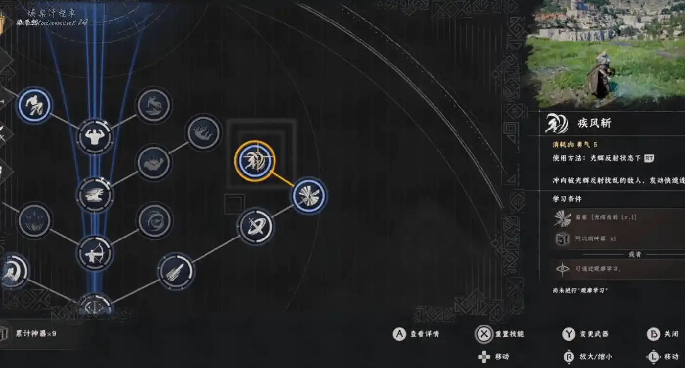光輝反射(勇氣消耗):按住LB+RB,消耗勇氣進入聚光狀態,為疾風斬做準備。