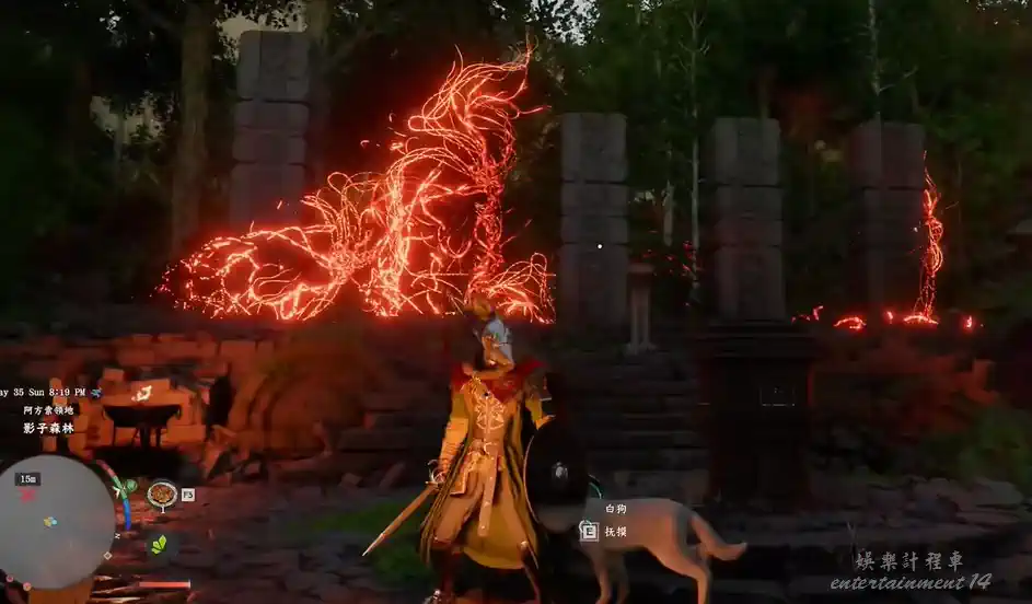 來到影子森林遺跡大門前,靠近後觸發影子教學