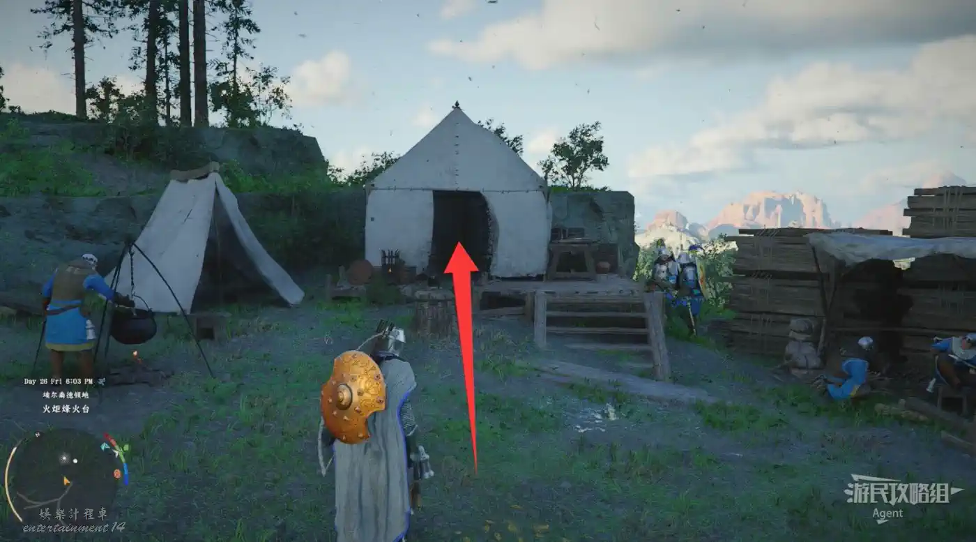在埃爾南德下圖位置,火炬烽火臺旁的帳篷裡,拿到【點火頭盔】。