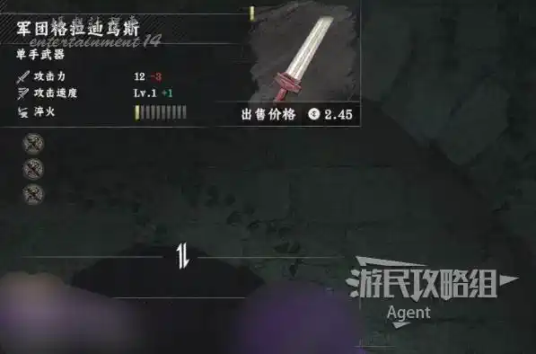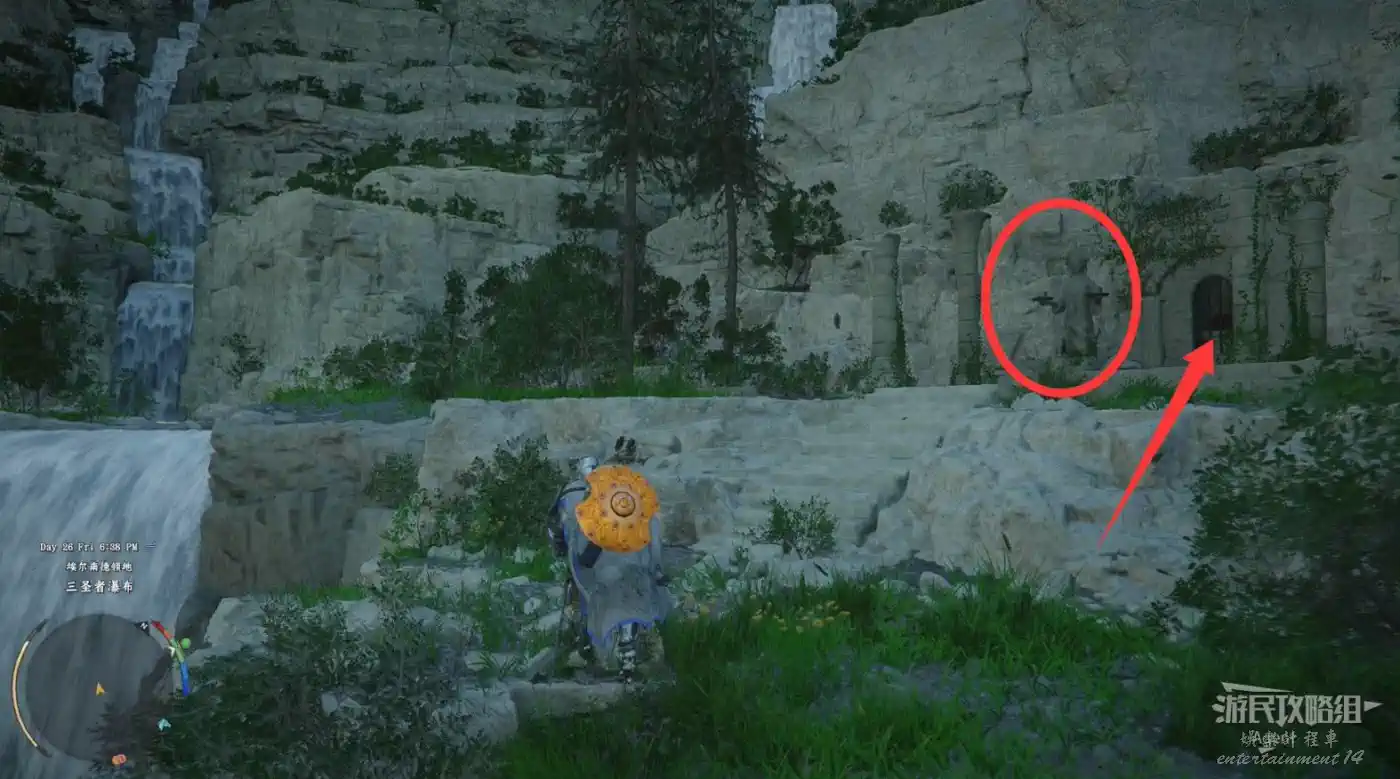 在埃爾南德下圖位置,瀑布頂端旁,點燃雕像雙手托著的兩根蠟燭,開門拿到寶箱裡的【軍團格拉迪烏斯】。