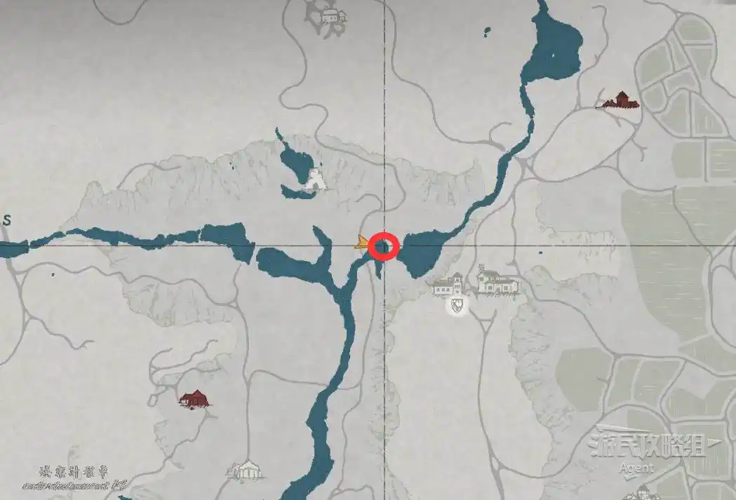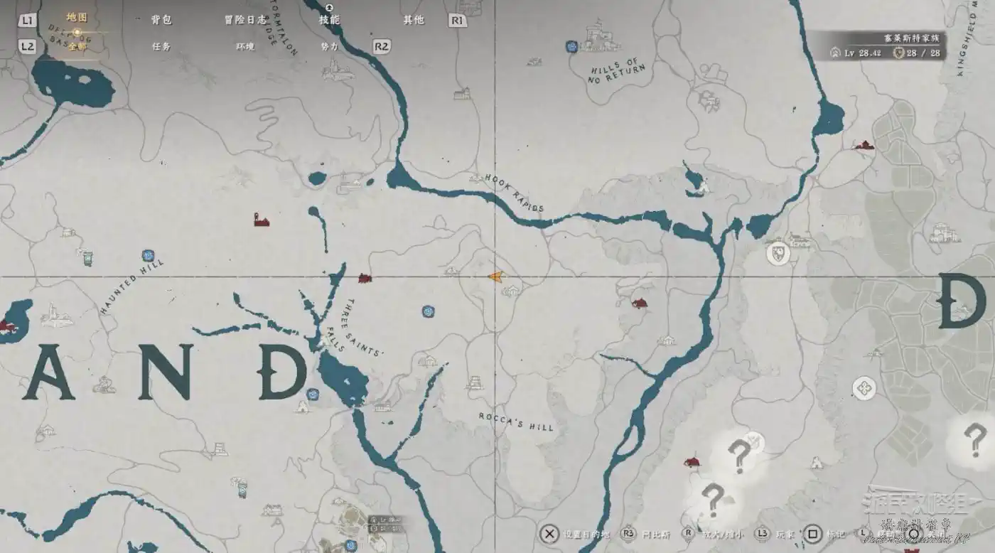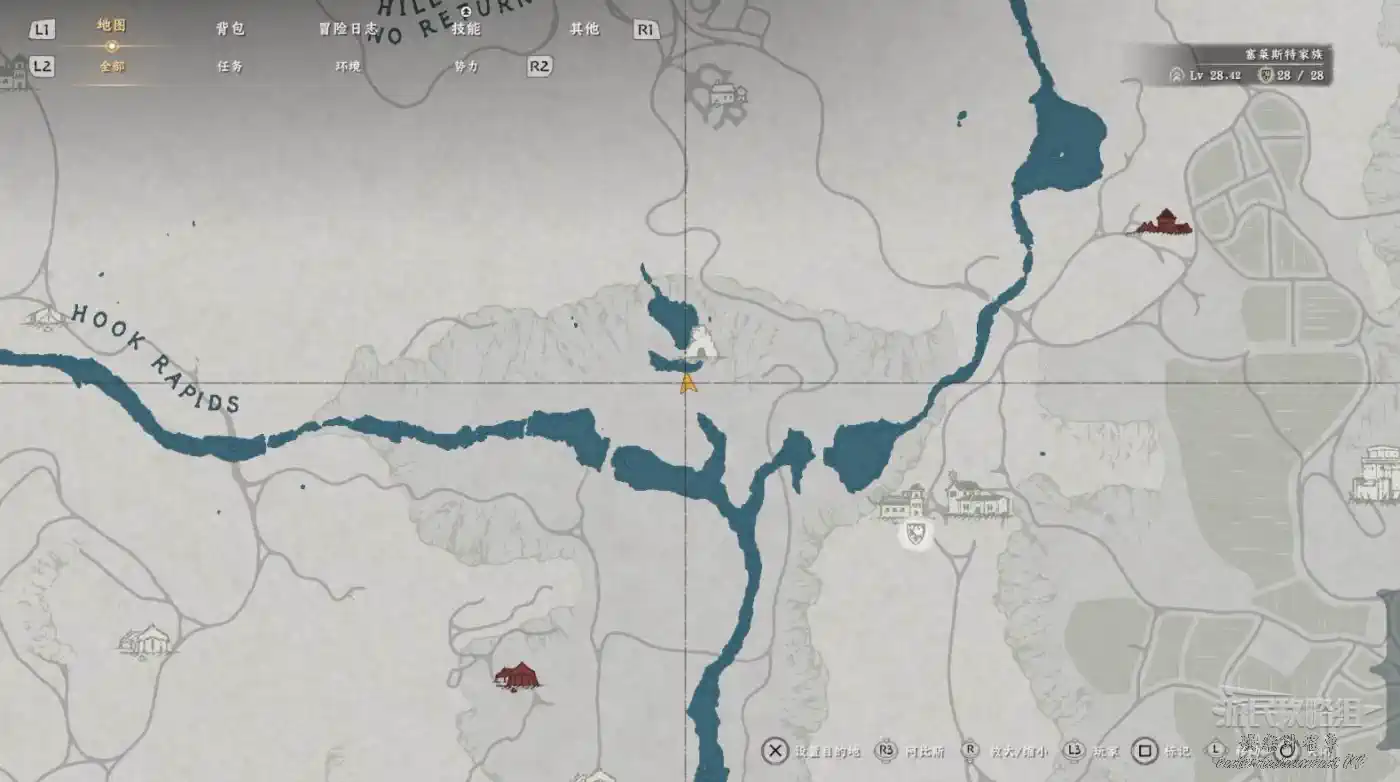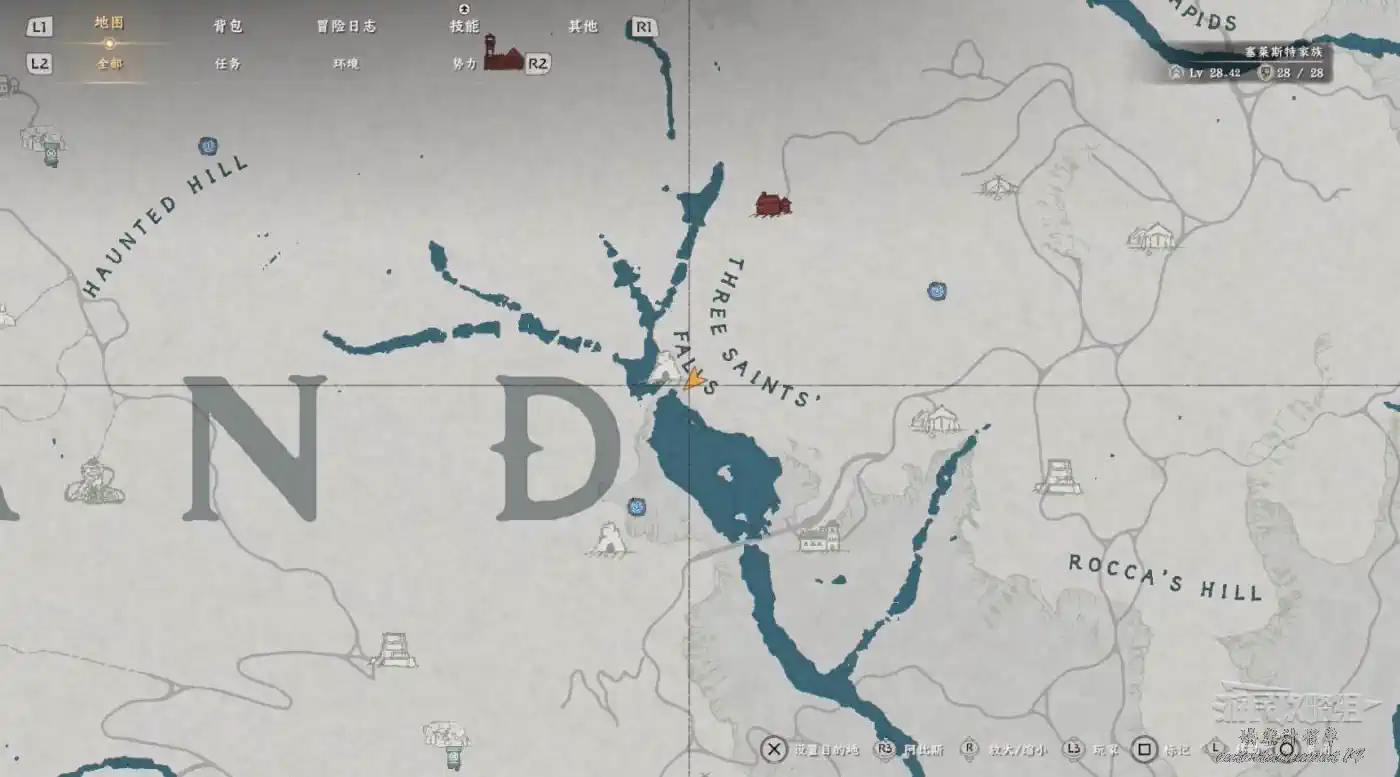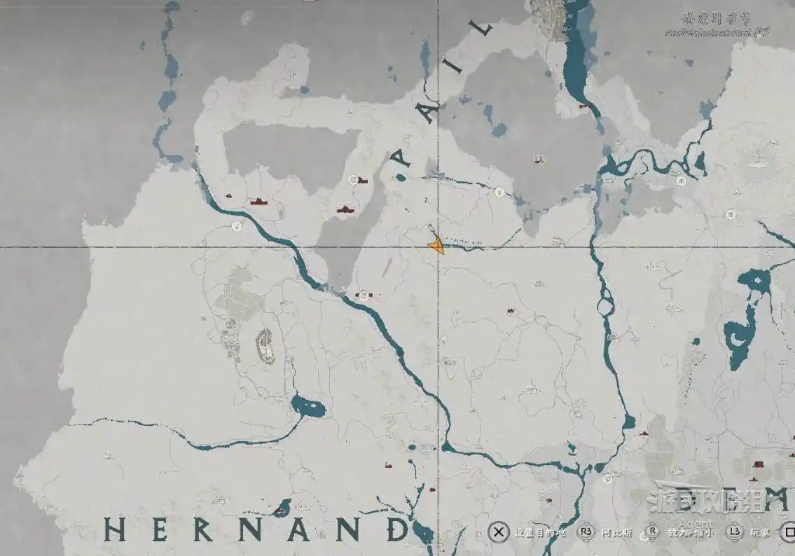 在埃爾南德北面(佩倫地區南面),下圖位置有兩個瀑布,注意看右邊瀑布的半山腰處,有摞起來的石頭標記(代表瀑布後面有隱藏洞窟)。