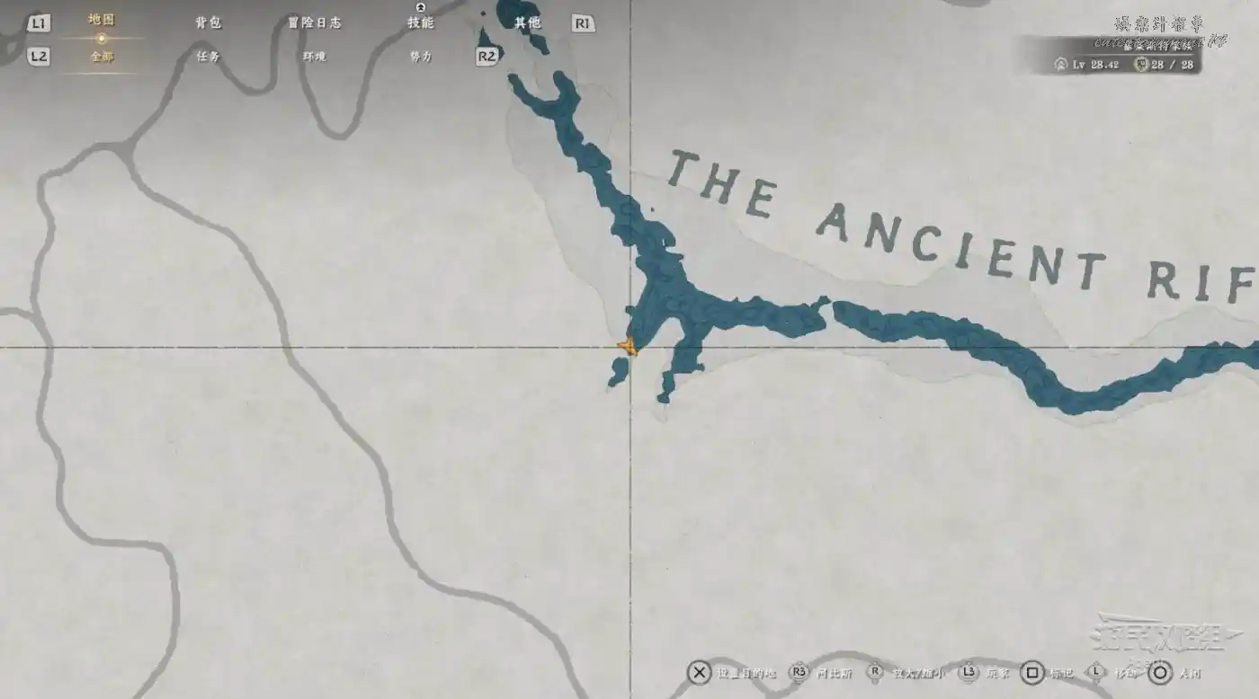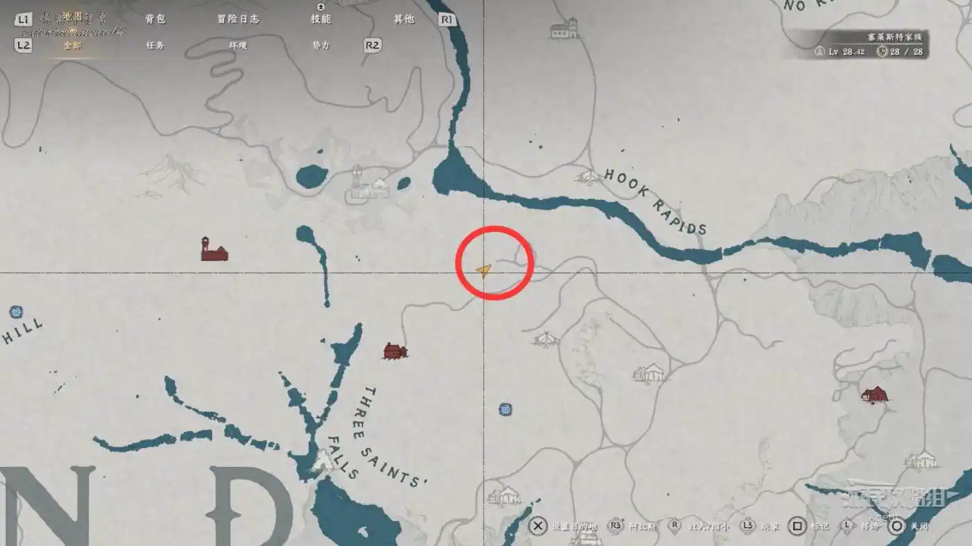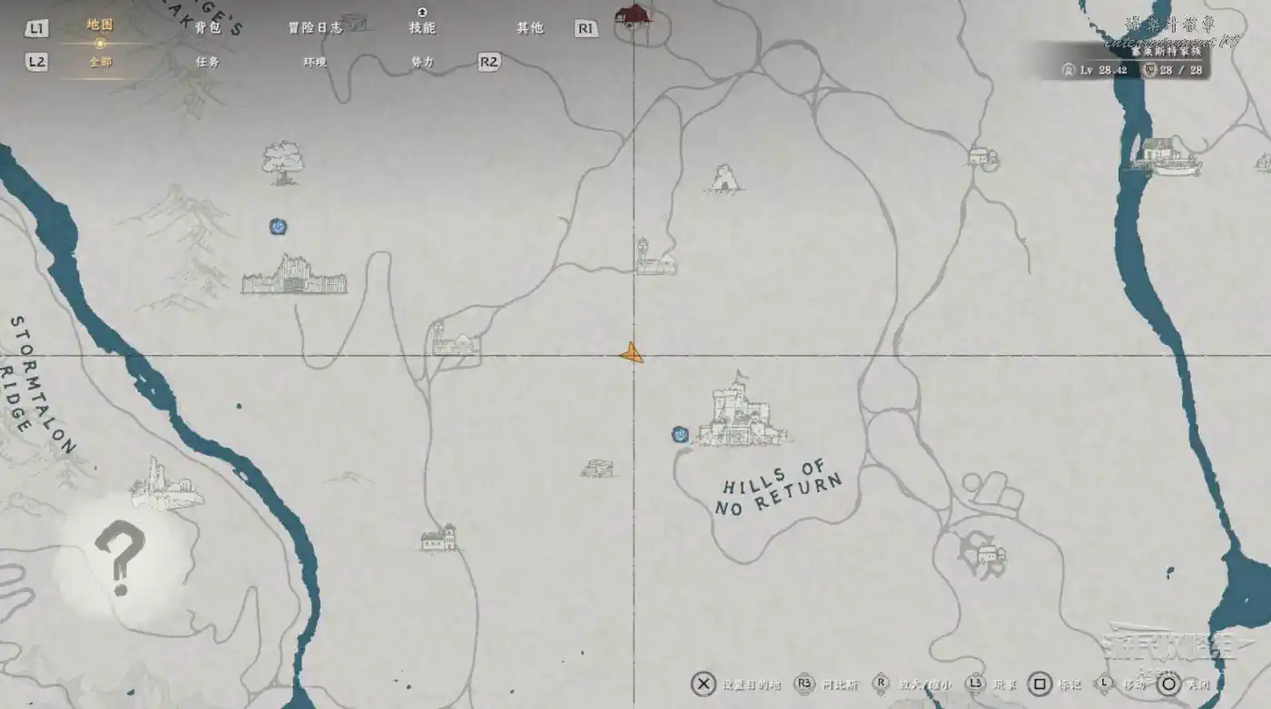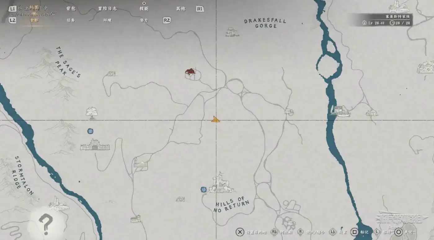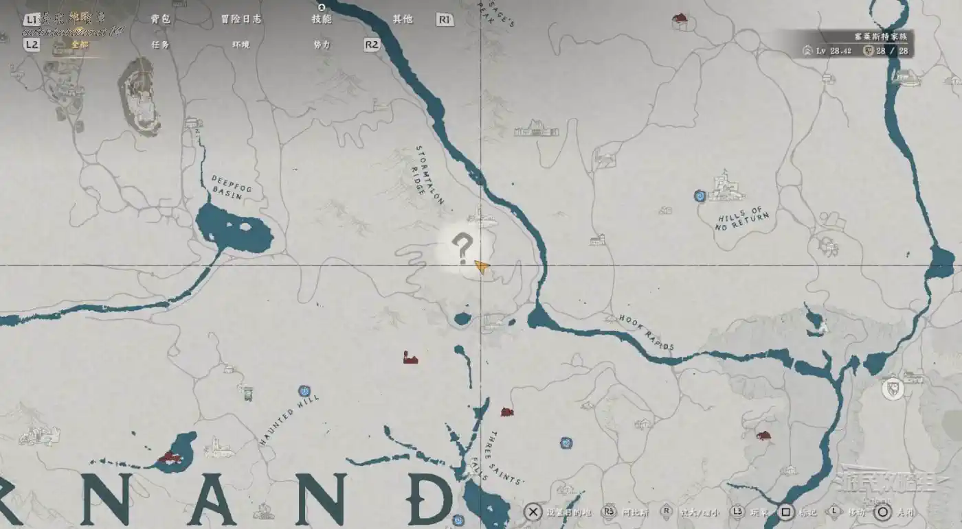 在埃爾南德北面(佩倫地區南面),下圖位置有兩個瀑布,注意看右邊瀑布的半山腰處,有摞起來的石頭標記(代表瀑布後面有隱藏洞窟)。