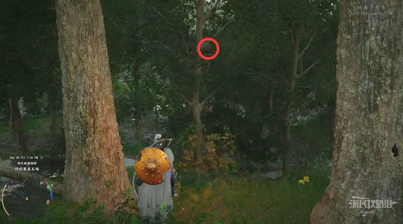 在埃爾南德下圖位置,採石場附近的樹林裡,很多樹上都有蜂巢,用弓箭射蜂巢(或者把樹砍倒)概率掉落【蜂巢棍】。