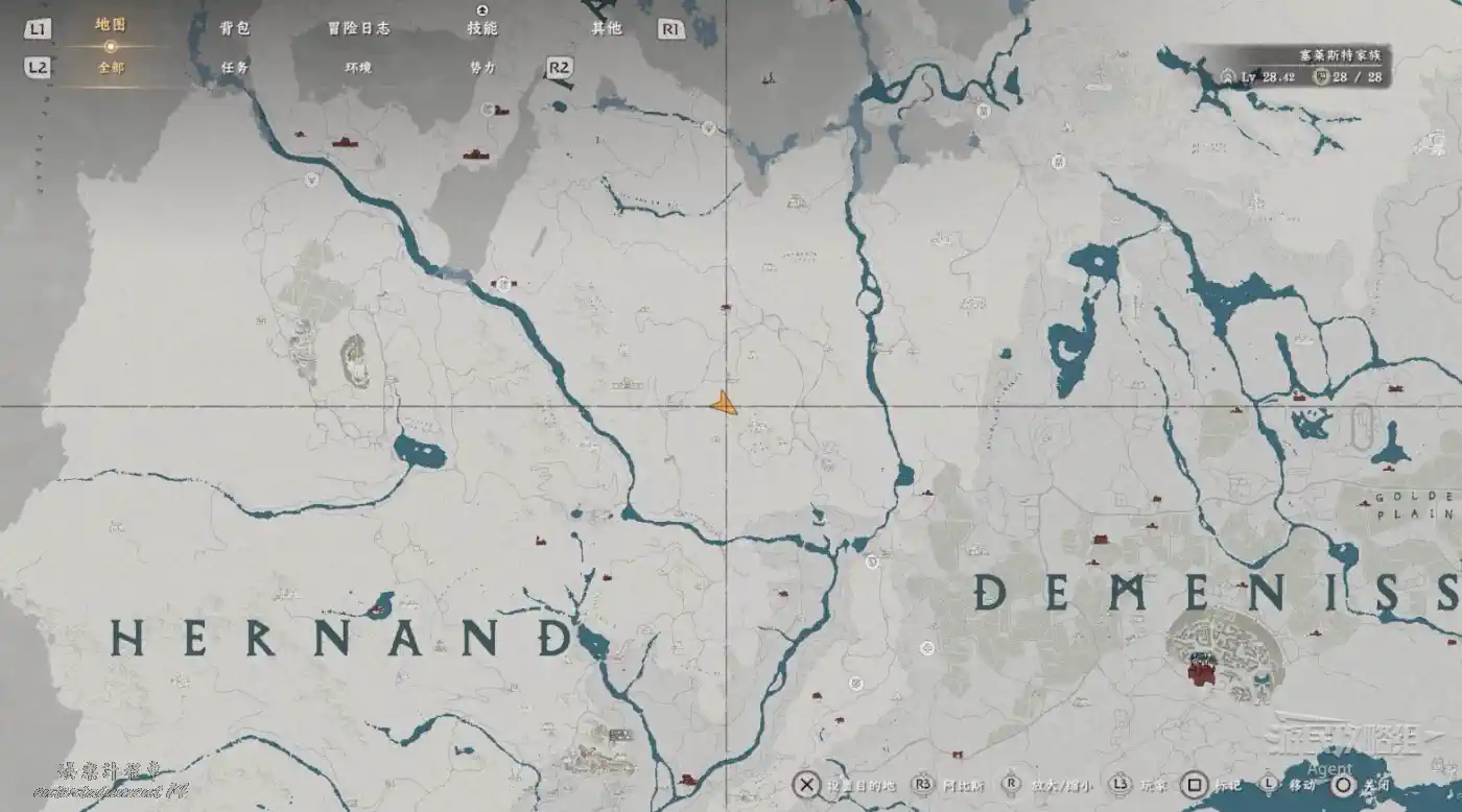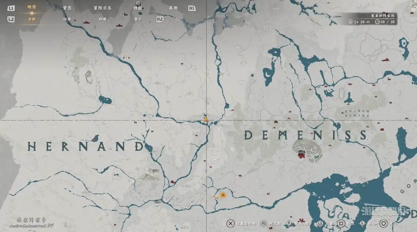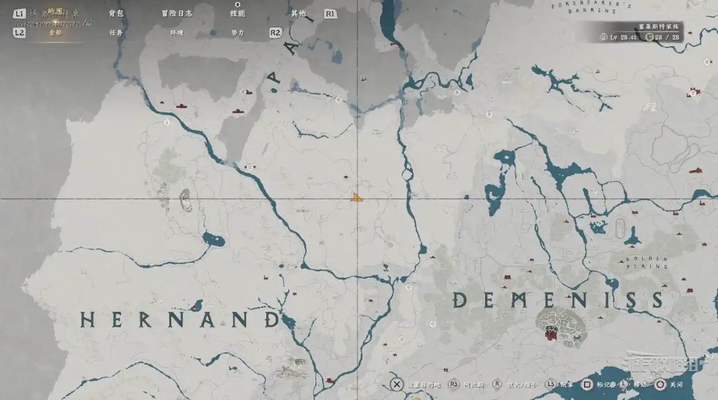 在埃爾南德東面(德梅尼斯附近),石牆農場下圖位置的穀倉裡,爬到上面開門(慢點進門,掉下去得重新爬),拿到寶箱裡的【焦灼火焰板金頭盔】。