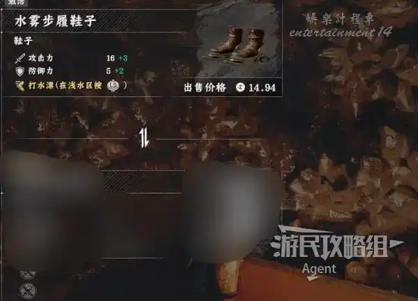 用刺擊進入瀑布後面的洞窟,然後用勁法打碎石塊,開寶箱拿到【水霧步履鞋子】。