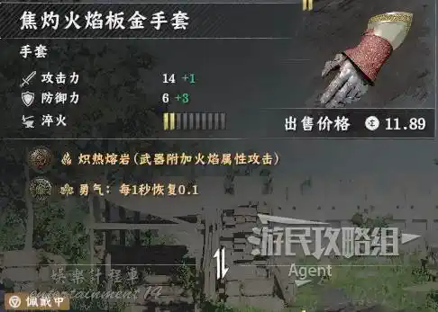 在埃爾南德東面的德梅尼斯,下圖位置有個小木門,蹲下鑽進小木門,開寶箱拿到【焦灼火焰板金盔甲】。