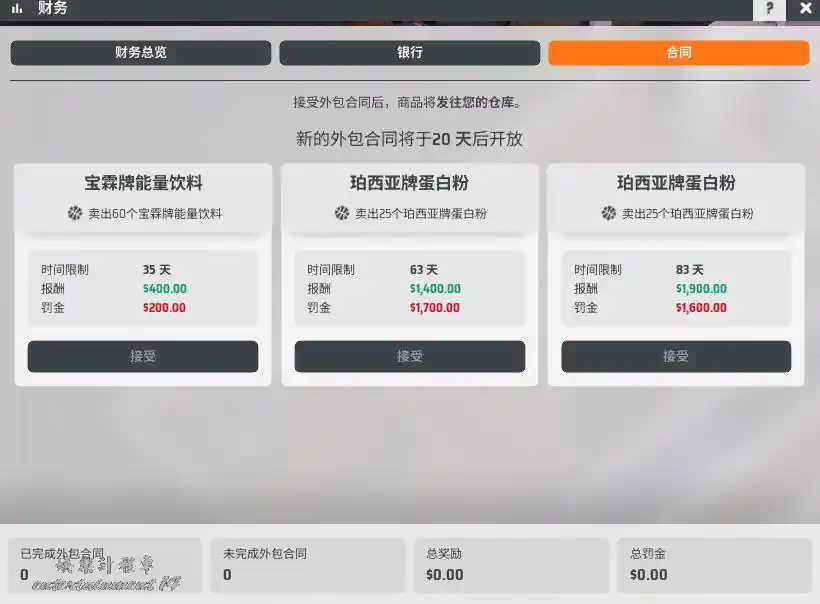 利用合同來賺錢,接報酬多的合同,然後買對應商品的行銷廣告,快速賣出來賺取報酬。