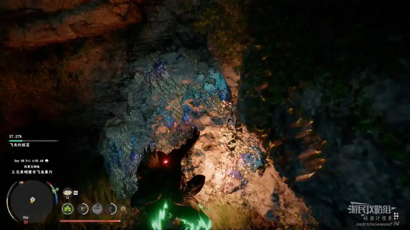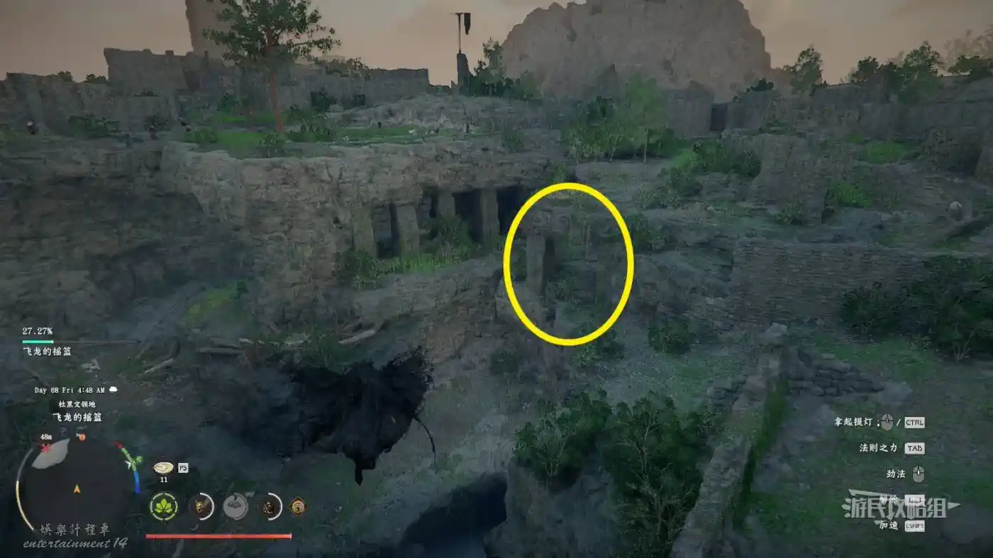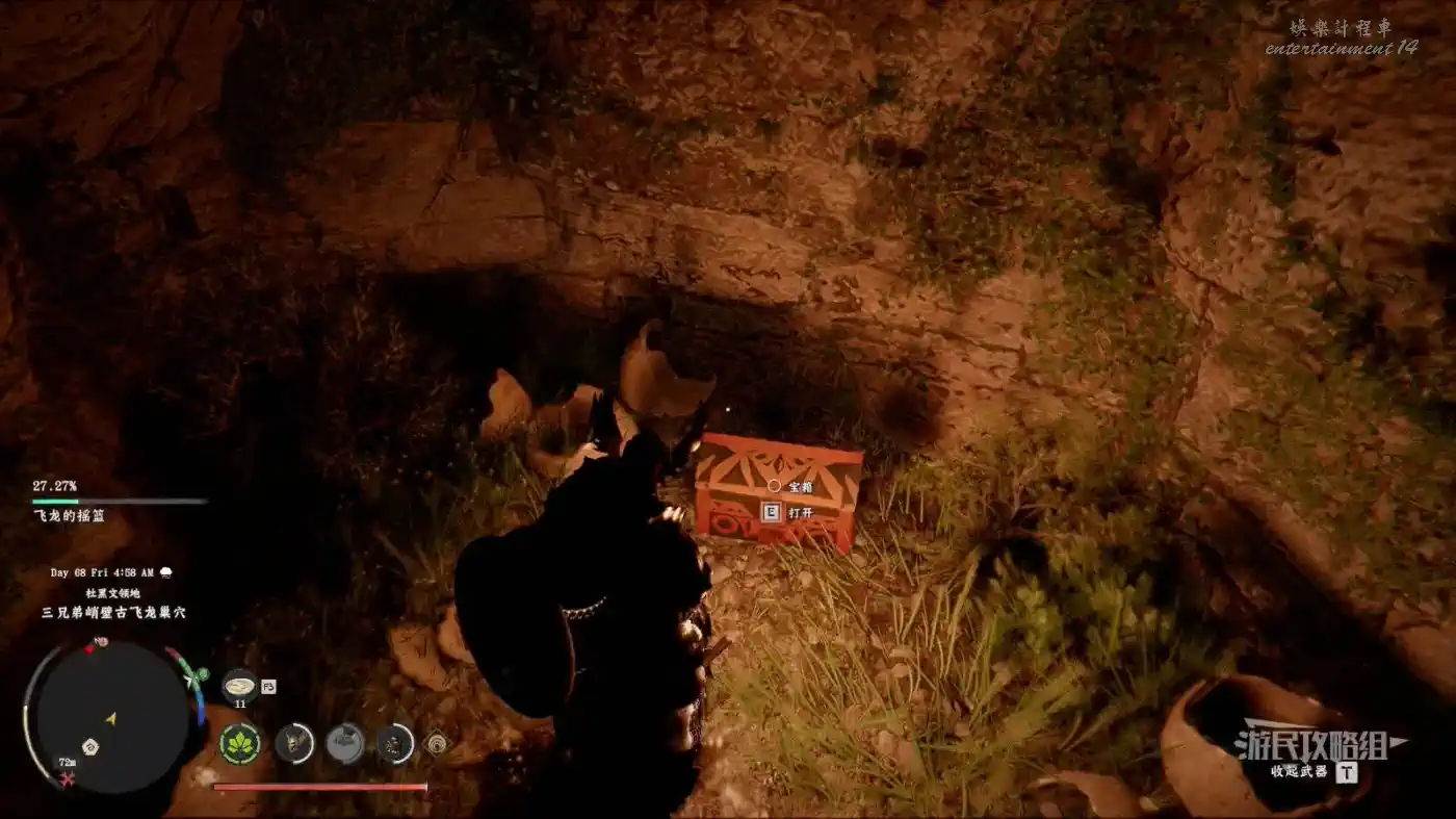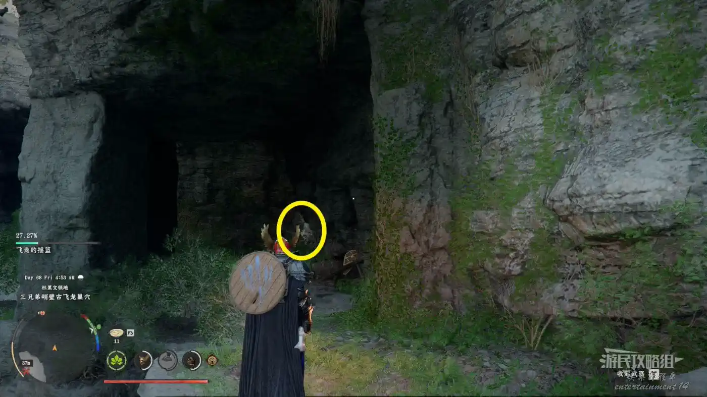 位於德雷西亞西南部杜黑文領地三兄弟峭壁古飛龍巢穴(地圖上THREE BROTHERS CLIFF北邊)。附近的懸崖峭壁比較多,不太好描述具體位置,建議爬上附近飛龍的搖籃據點瞭望塔往下飛,參考下圖看到下層有許多石柱的位置,走右側石柱進入通道,在通道盡頭使用凝神勁法(鍵盤X鍵+滑鼠中鍵/L3+R3+R3)打碎石頭,進入石頭後方房間開啟寶箱即可獲得。