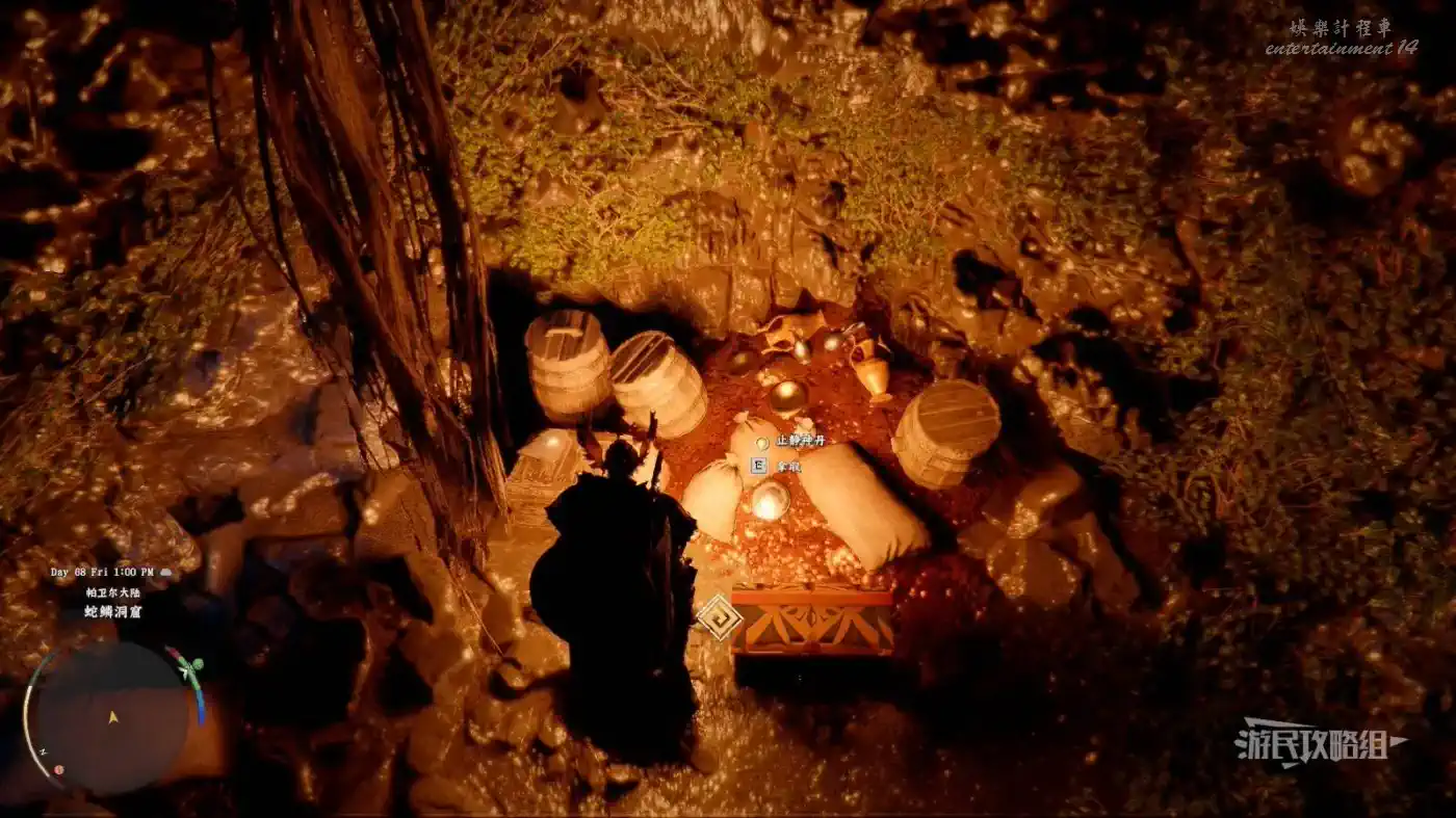 位於德雷西亞南邊貝努斯江的一道瀑布後的蛇鱗洞窟中(瀑布前面有個石錐),按刺擊(R1+△/RB+Y/Shift+滑鼠右鍵)穿過瀑布進入洞窟,沿著唯一的路往前走到頭,開啟寶箱即可獲得,寶箱後面還有一顆【止靜神丹(滿血復活藥)】。