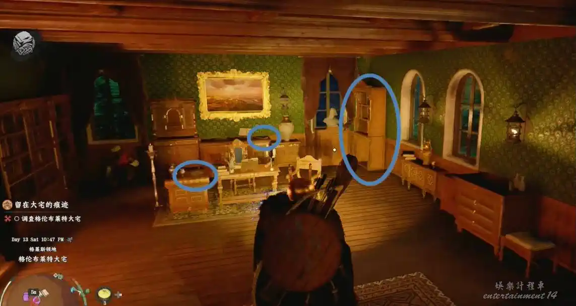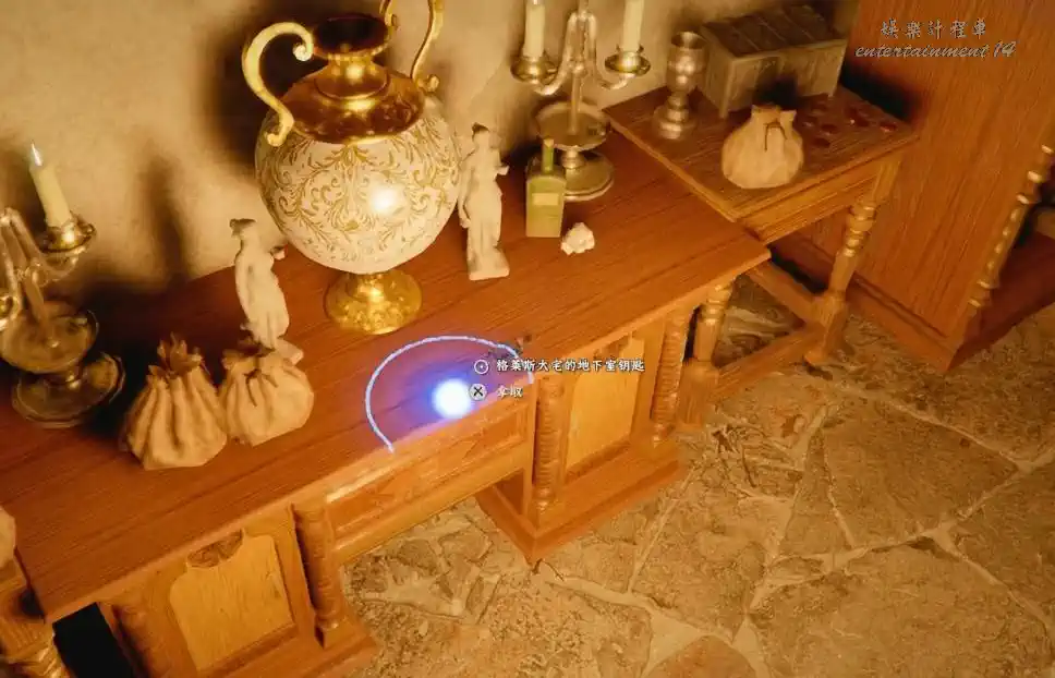 葛籣布萊特大宅地下室,核心是先拿地下室鑰匙、再拿兩把寶石匕首、最後壁爐插匕首開密道。
