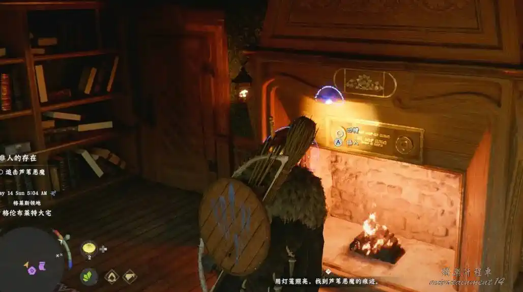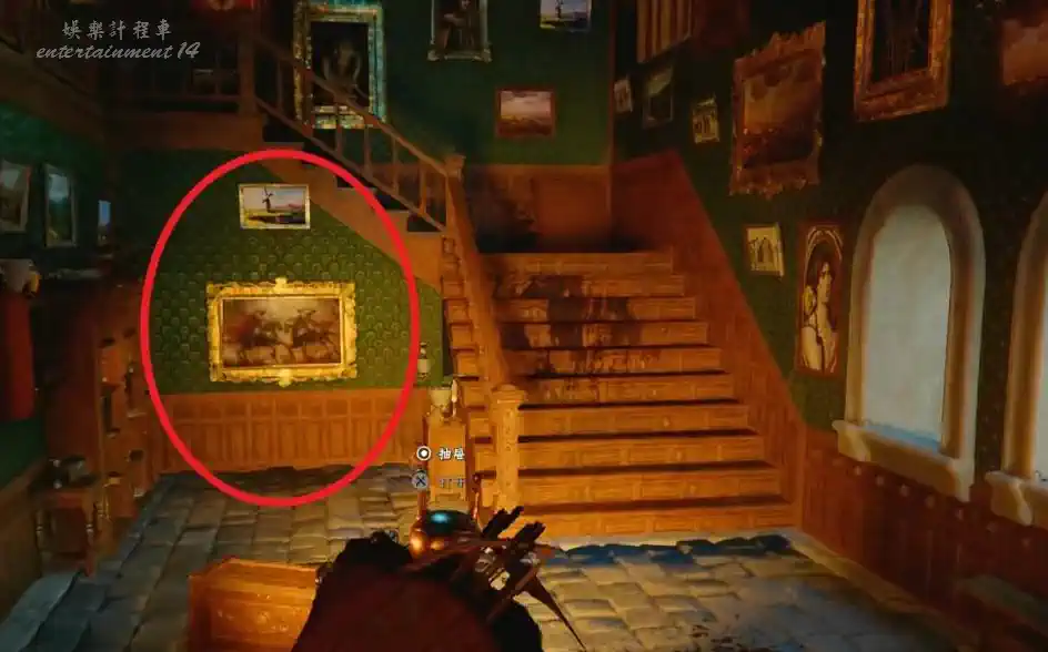 走到二樓走廊盡頭房間(拿鐵門鑰匙的房間),找到左側壁爐。