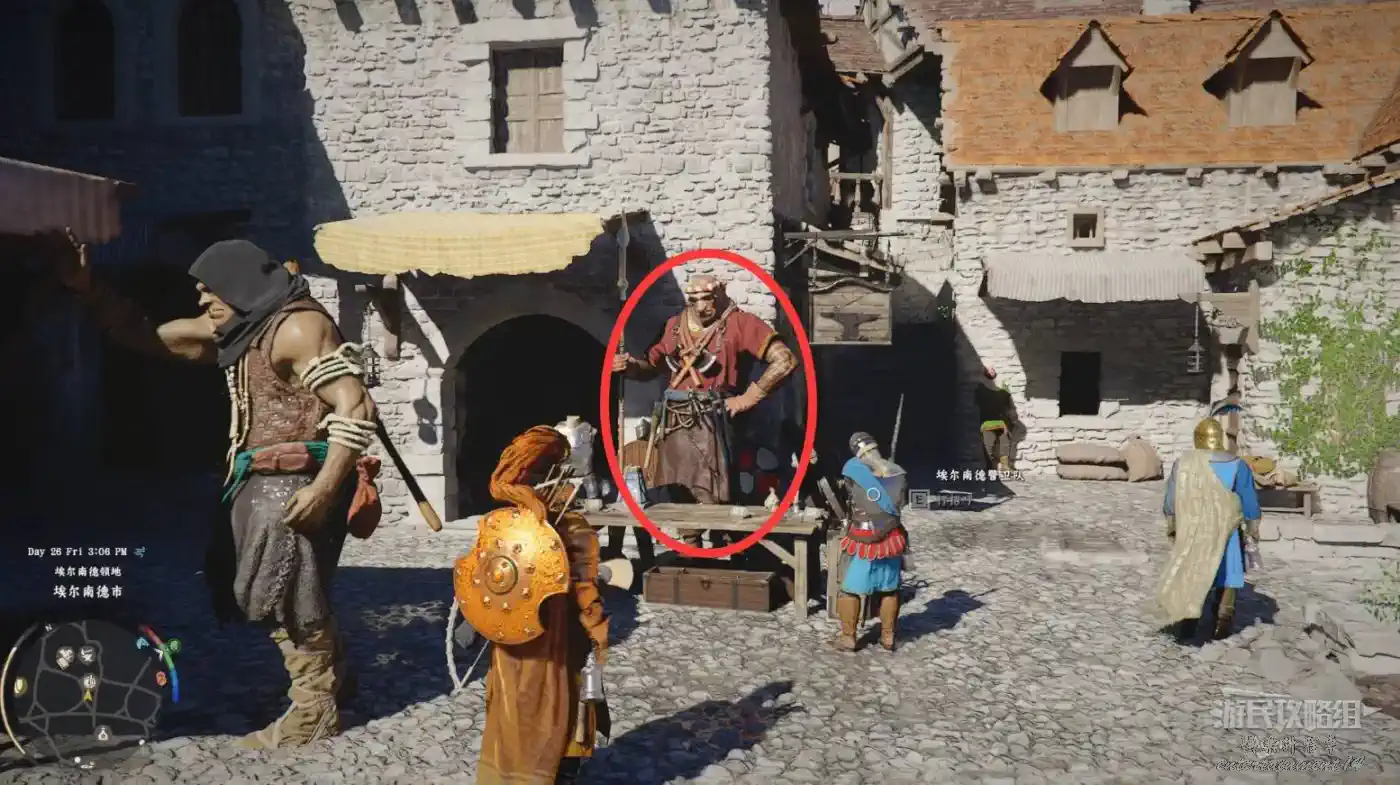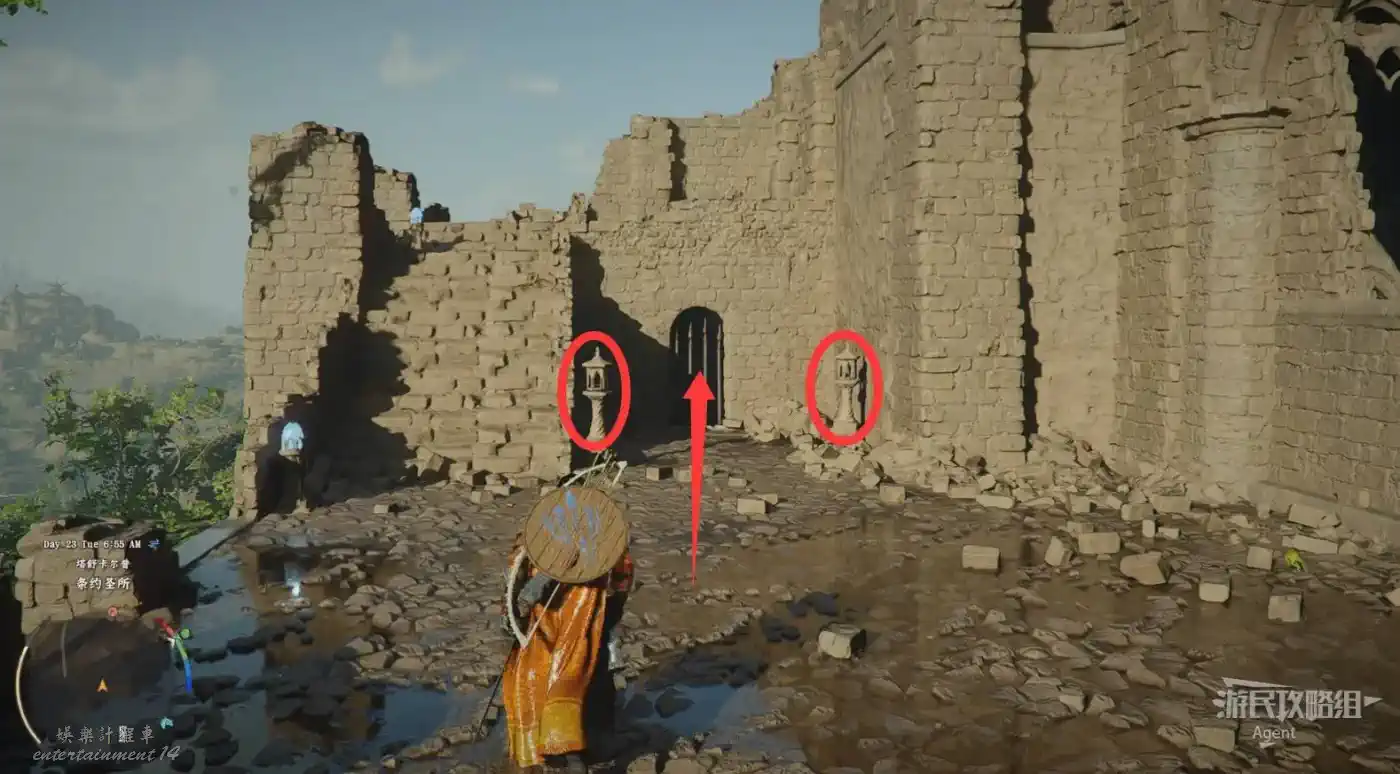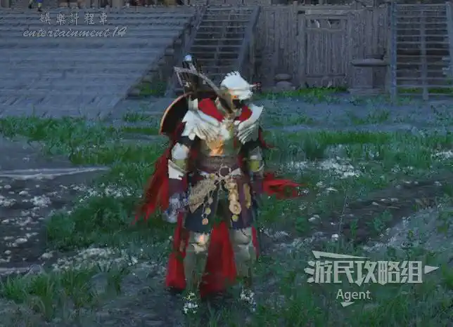 在埃爾南德東面的德梅尼斯,下圖位置有個小木門,蹲下鑽進小木門,開寶箱拿到【焦灼火焰板金盔甲】。