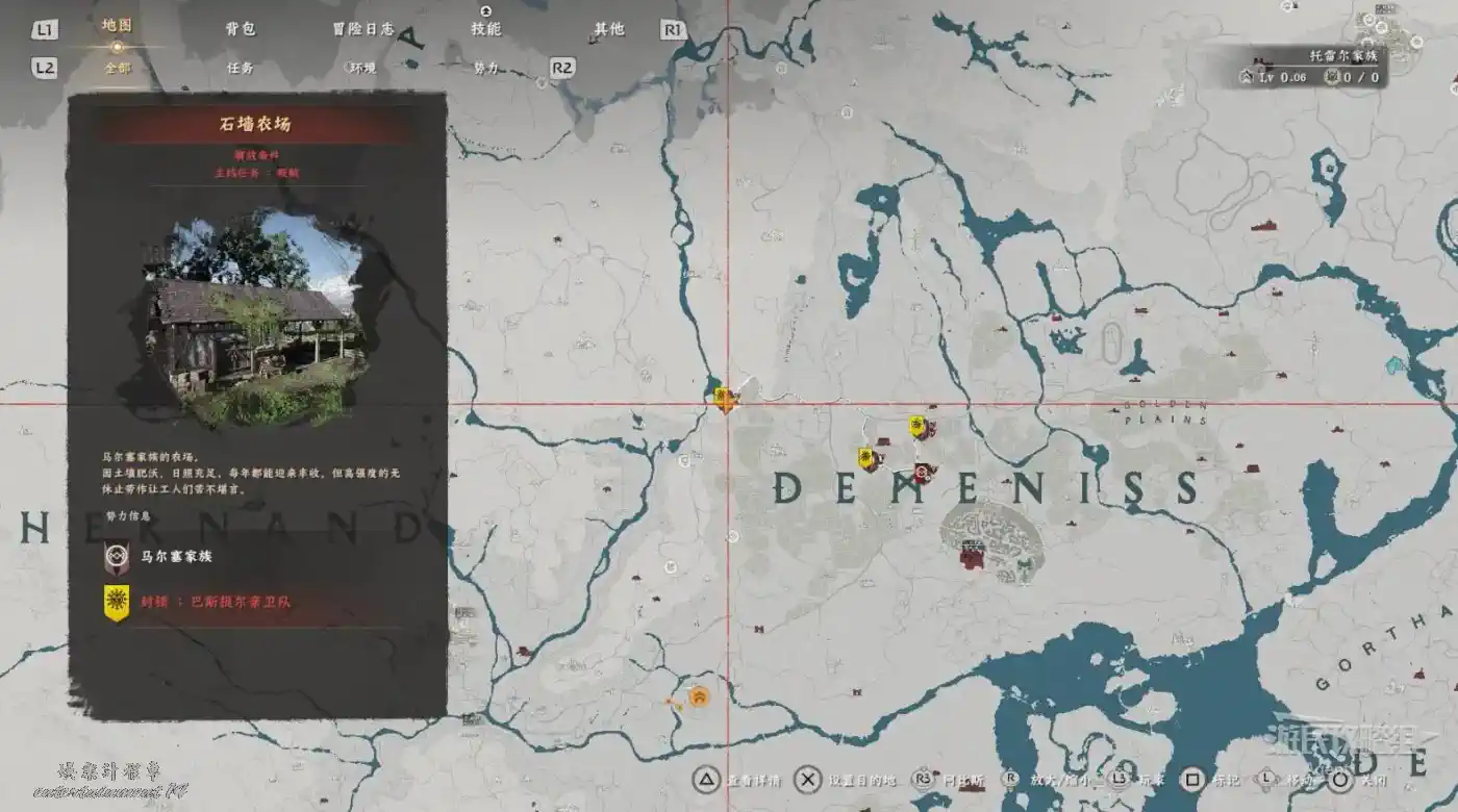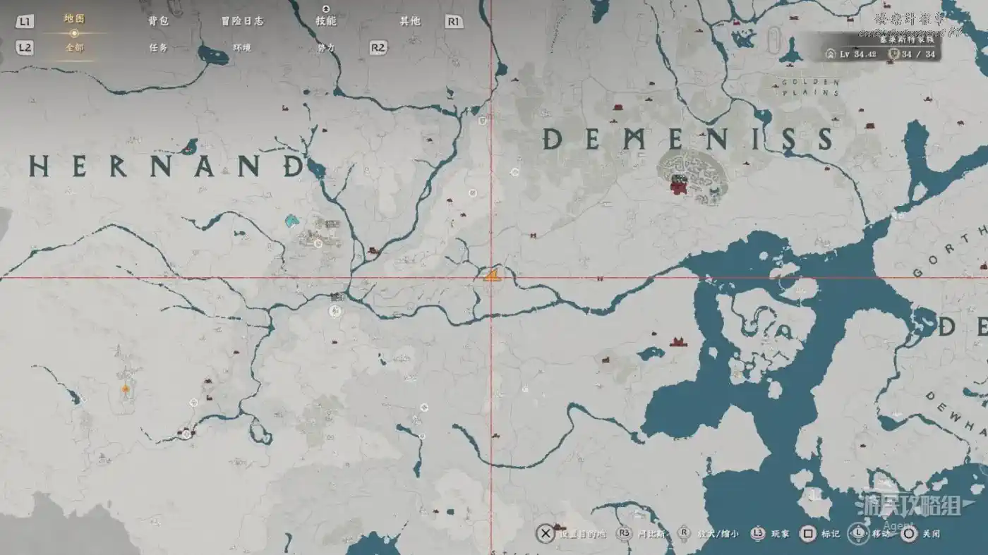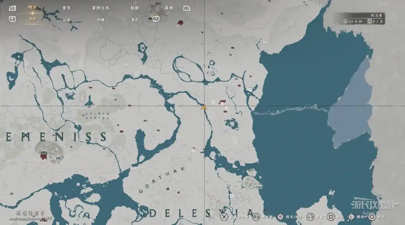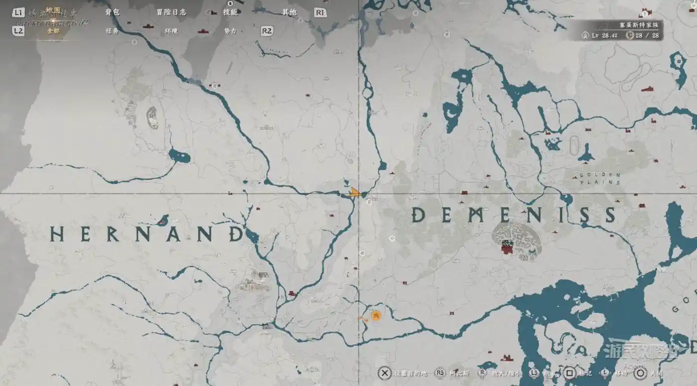 在大地圖最東面(德梅尼斯區域東面,黃金甲套裝各個部件都在這塊附近),下圖位置有個瀑布。