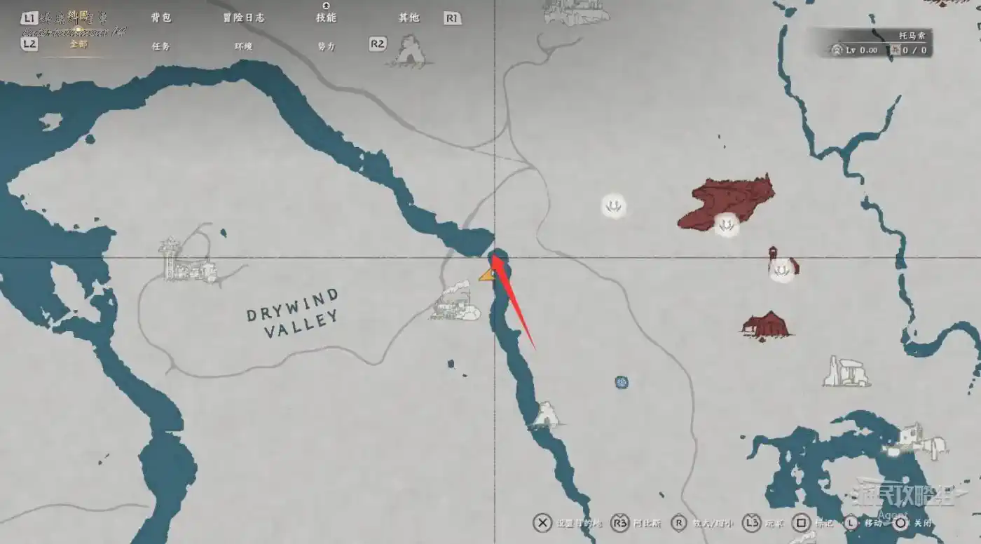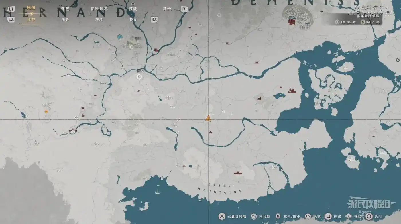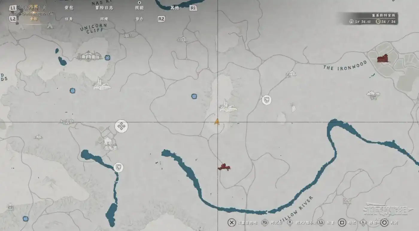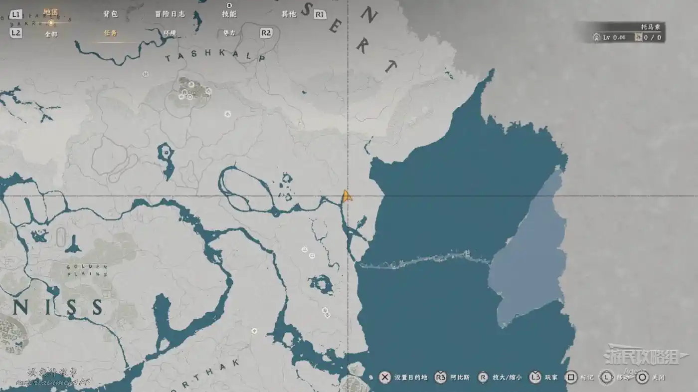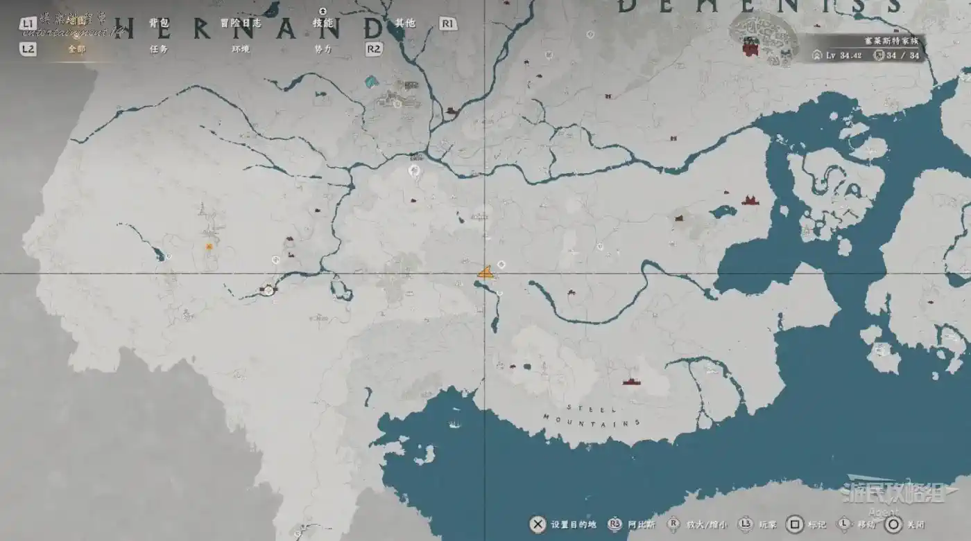 在大地圖最東面(德梅尼斯區域東面,黃金甲套裝各個部件都在這塊附近),下圖位置有個瀑布。
