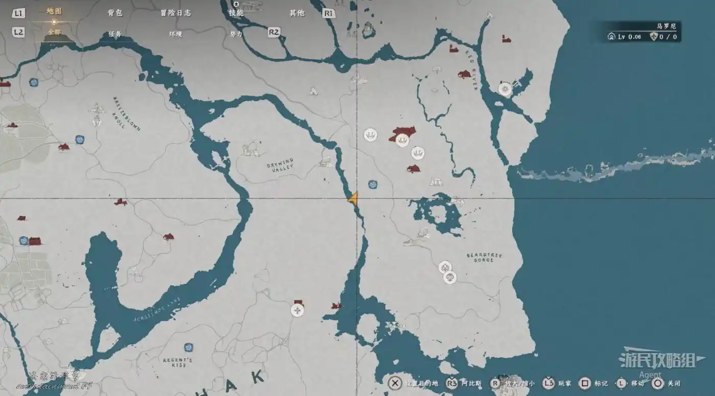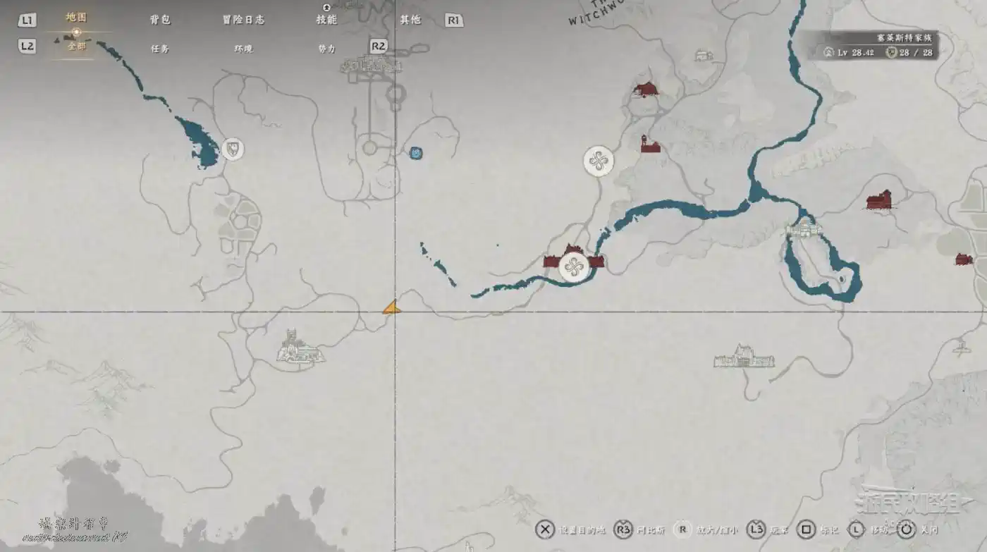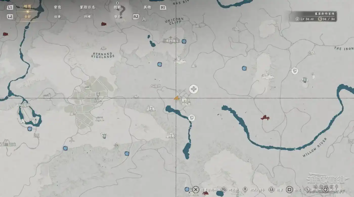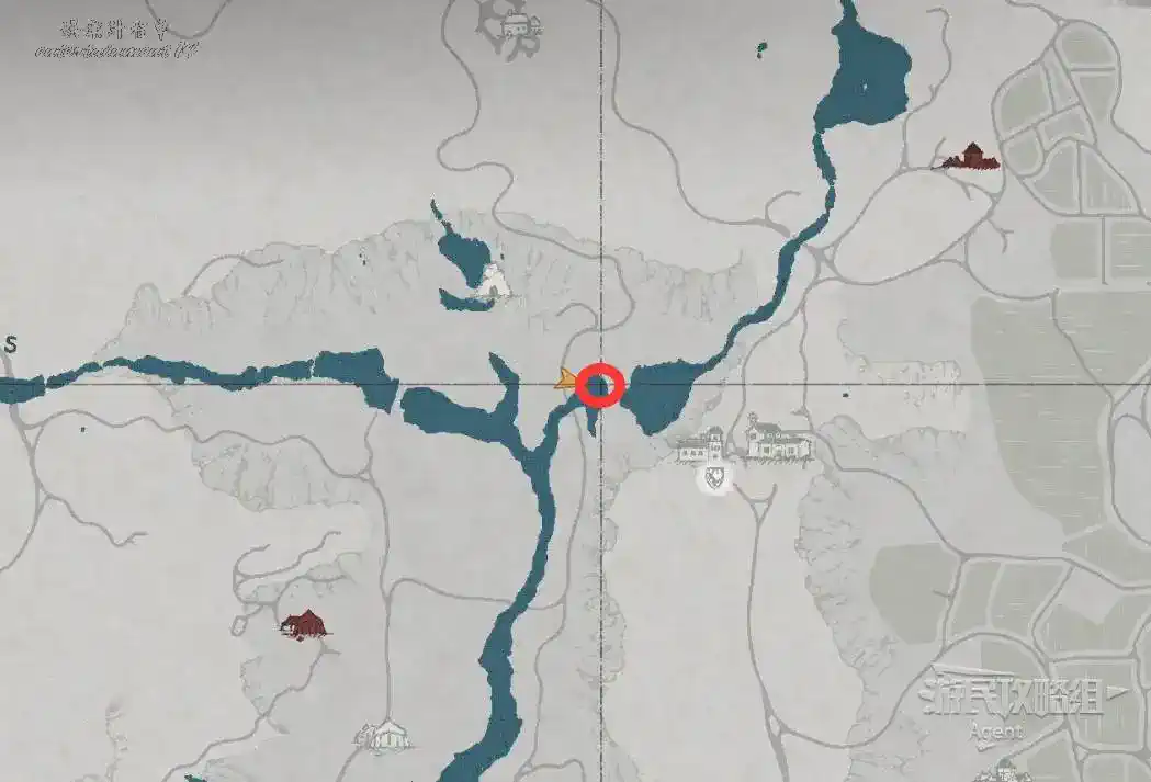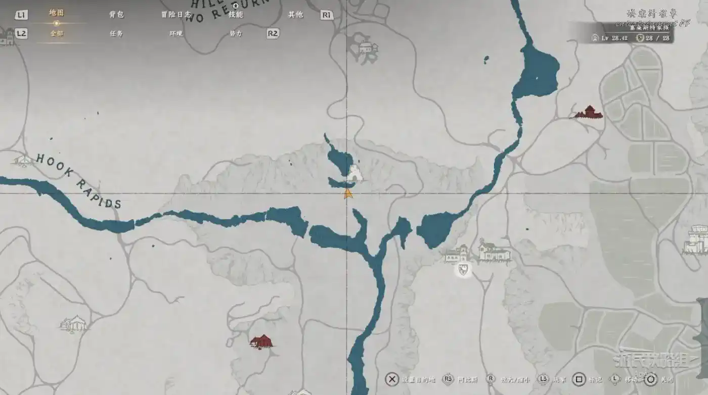 在大地圖最東面(德梅尼斯區域東面,黃金甲套裝各個部件都在這塊附近),下圖位置有個瀑布。