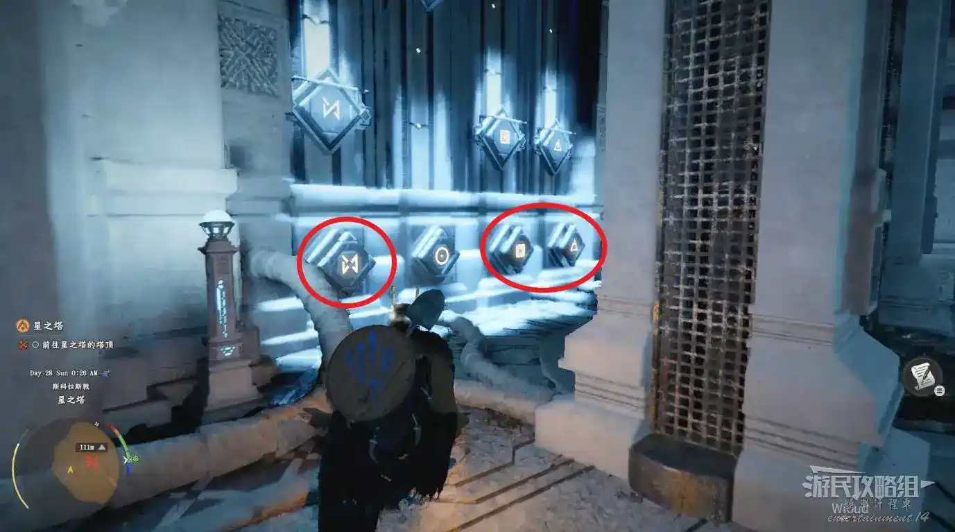 該塔樓無需尋找,主線必定經過,到該塔樓前觸發解謎,入口後方就是解謎的區域。