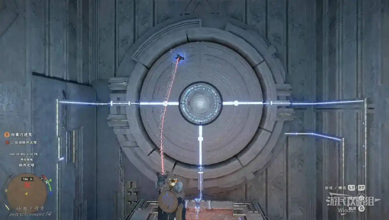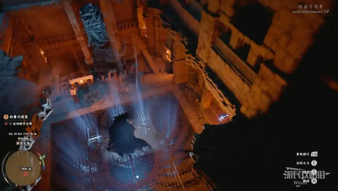 完成兩個區域的解謎,塔樓大門解鎖,進入塔樓沿著樓梯往上走。