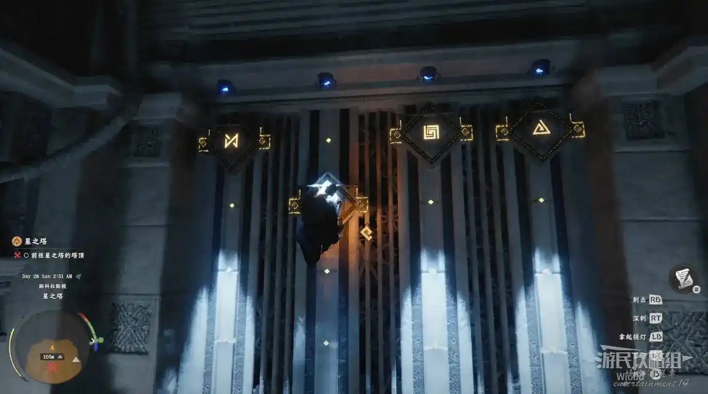 乘坐中間的電梯到塔頂觸發動畫,進入“洞察之聖所”。