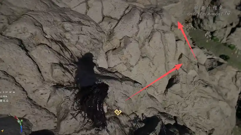到正門後,向右側山崖下滑翔/二段跳+漂浮,進入石拱洞窟,沿礦道到底層風扇/電梯區。