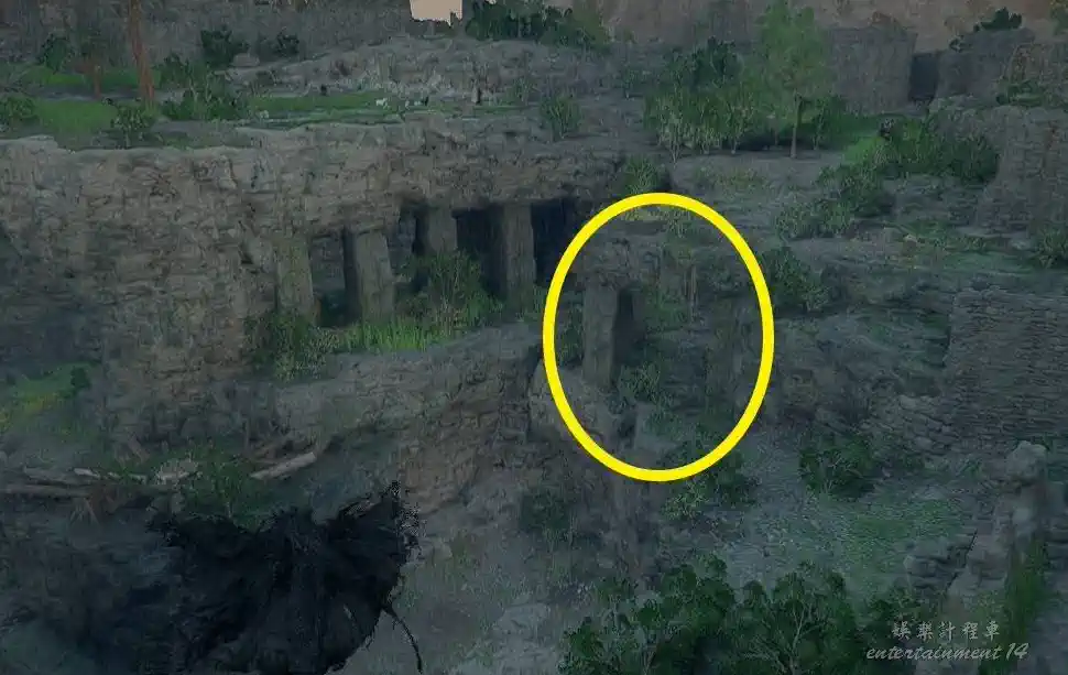 找到石柱區域後,從右側石柱進入通道。