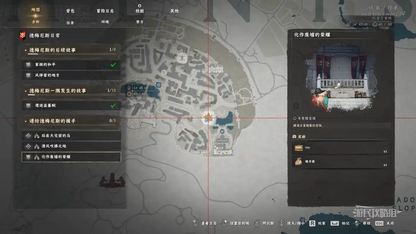 將主線劇情推進到治好第八章後,前往德梅尼斯城鐘樓底部,靠近湖邊的欄杆處,與貴族交談接取德梅尼斯日常勢力任務【遞給德梅尼斯的援手-化作廢墟的榮耀】,建造完王室陵墓紀念館之後打開地圖,在德梅尼斯城東側的王室陵墓位置,按介面下方提示按鍵查看詳情,打開任務目錄建造王室陵墓紀念館。建造完成後,即可在紀念館中的棺槨旁邊拾取此武器。