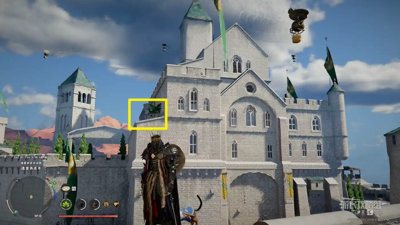 位於德雷西亞東北邊的德雷西亞城中,在一個較高建築的露臺上,需要戴面罩,需偷竊。