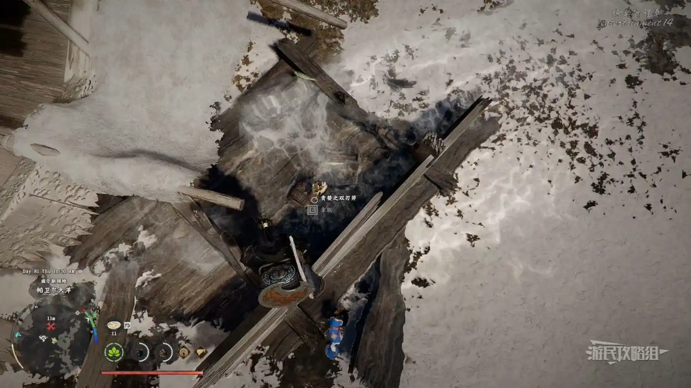 位於德梅尼斯地圖最南邊的海邊,峭壁遇難船隻處,注意這把斧子在海邊的船隻殘骸中,會被海浪不斷往岸上推,可能會出現被推進船裡卡建模無法拾取的BUG,建議提前存檔,來了看到就趕緊撿,如果沒有看到就讀檔或過段時間再來。