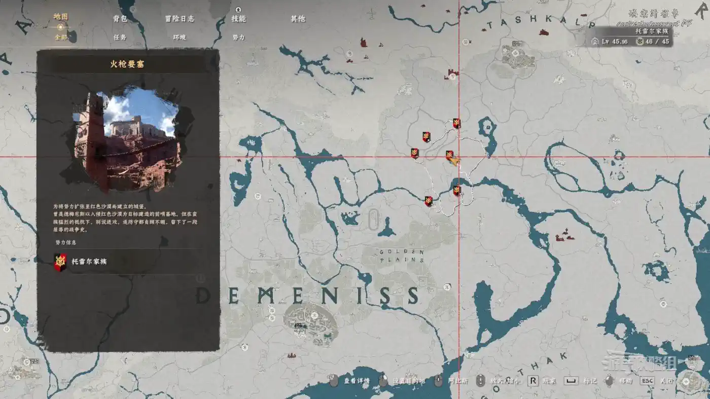 位於德梅尼斯地圖上GOLDEN PLAINS東北邊火槍要塞第1前哨基地中,在最北邊的營帳裡掛著的地圖後方,靠著箱子,需要偷竊(戴面罩瞄準偷竊)。