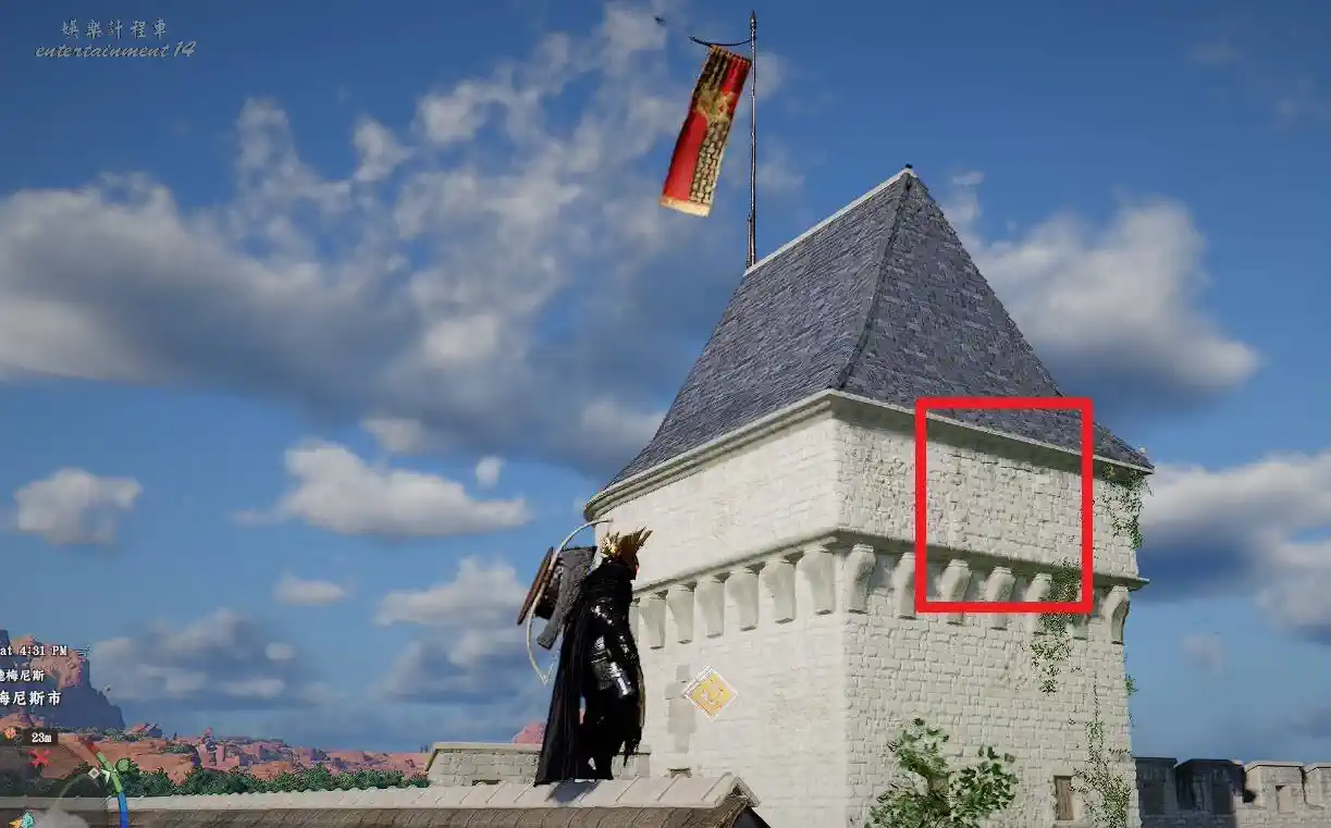 赤血沙漠 (Crimson Desert) 黑布林皮制披風獲取攻略 3 4 月 2026-04-03 廣告 來源:互聯網 傳送到德梅尼斯城,向北方向移動,尋找一棟帶有閣樓窗戶的房子。 靠近房子的閣樓窗戶,互動打開窗戶後翻入閣樓內部。 在閣樓內找到寶箱並開啟,即可獲得黑布林皮制披風。 裝備屬性一覽 類型:披風 防禦力:具體數值以遊戲內為准 冰霜抗性:Lv5 出售價格:2.64 背景描述:德梅尼斯王國公爵加布裡埃爾·卡利班曾穿戴。 外層採用硬皮革,內襯使用柔軟的毛皮,為穿戴者提供溫暖與安全感。