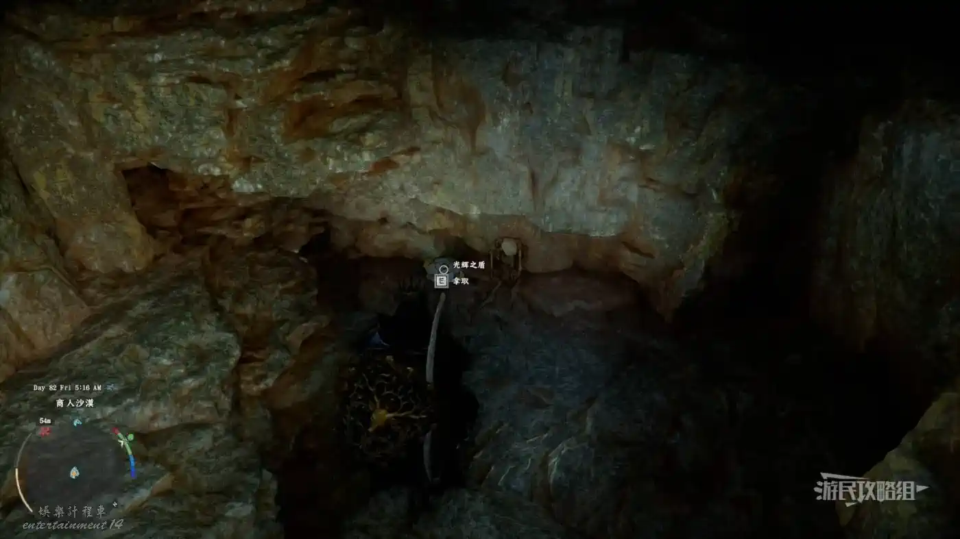 赤血沙漠 (Crimson Desert) 光輝之盾位置及獲取方法 8 4 月 2026-04-08 廣告 作者:瑞破受氣包 來源:遊民星空 光輝之盾獲取方法 可裝備角色:德米安 位於地圖上紅色沙漠區域東北方向湖泊的北邊,沙地上可以看到一個大坑,跳入大坑,到達大坑另一側,在靠牆的骷髏旁邊即可拾取。 下方截圖為站在大坑所在位置,周圍的場景,供大家參考。 跳進大坑,走到另一頭即可拾取此盾牌。