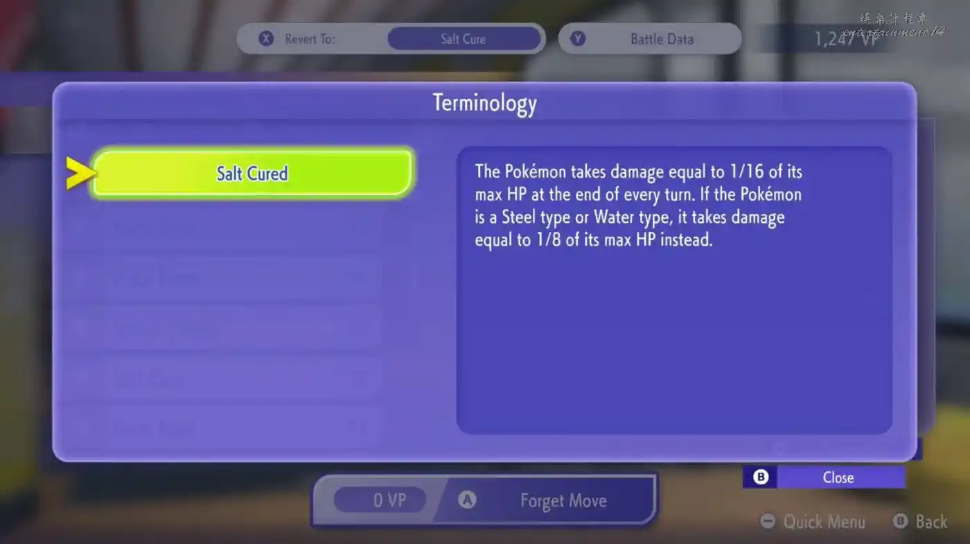 鹽醃的基礎傷害變為1/16,對水系和鋼系的傷害變為1/8。